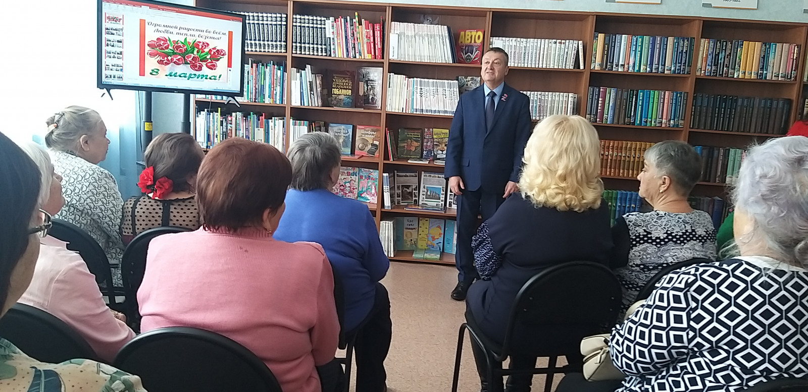 В преддверии Международного женского дня 07.03.2025 г. в детской библиотеке «Сибирячок» (пр.Молодежный, 9 б) состоялся вечер-поздравление «Весенний букет» для участников клуба «Сердечные встречи». Гость мероприятия - депутат Кемеровского городского Совета народных депутатов Ветров Евгений Викторович - выступил с прекрасными поздравлениями, пожеланиями крепкого здоровья, счастья, благополучия и вручил женщинам праздничные подарки.