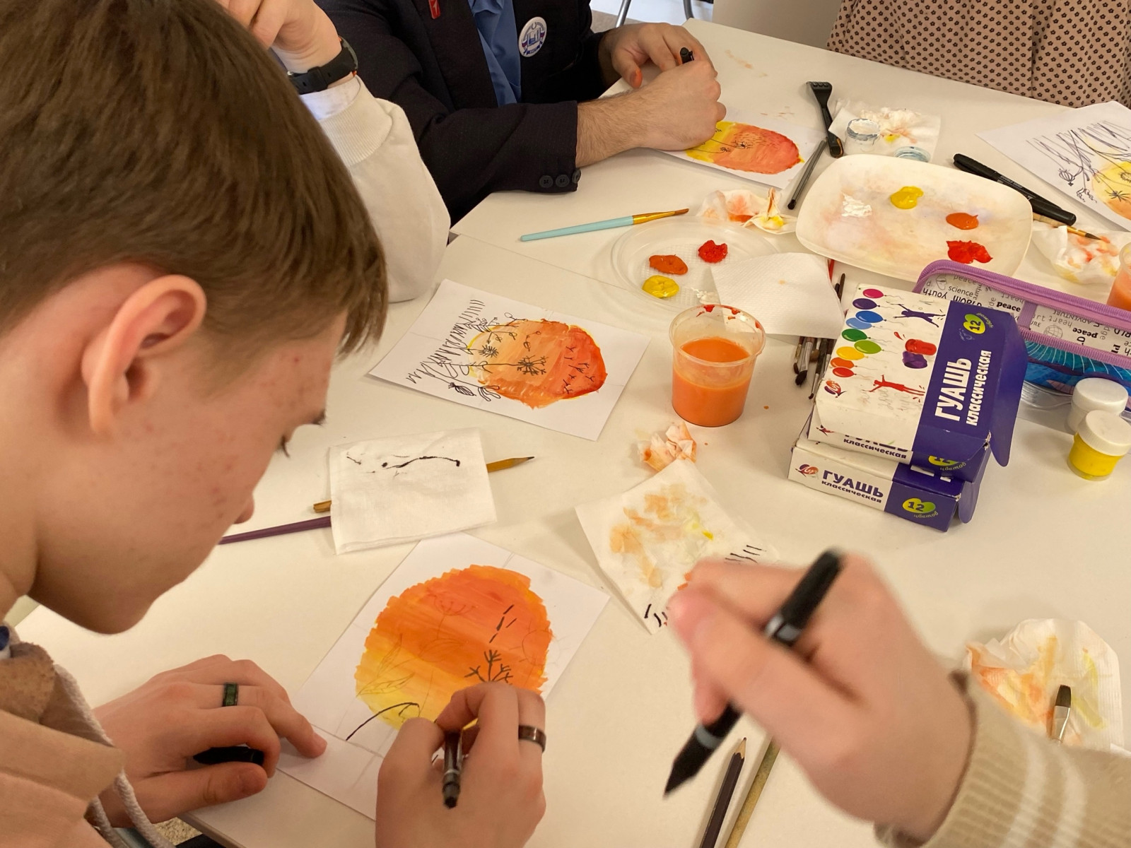 Встреча прошла в теплой и дружелюбной атмосфере. За круглым столом ребята не только обсуждали важные темы, но и занимались творчеством под руководством опытной художницы Натальи Секериной.