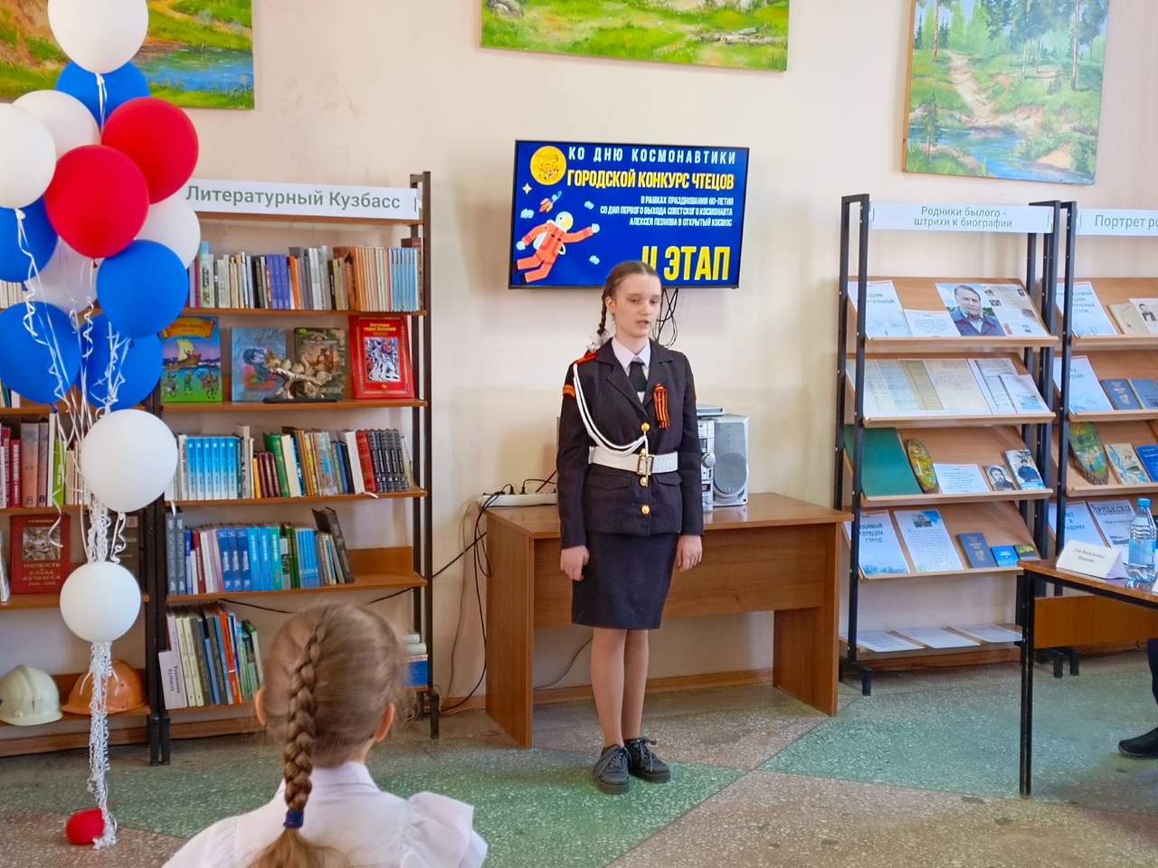 В Библиотеке им. Г. Е. Юрова состоялся районный отборочный тур XIX Городского конкурса юных чтецов, посвященного Дню космонавтики. В этом году конкурс приурочен к знаменательной дате – 60-летию первого в истории выхода человека в открытый космос, который совершил советский космонавт Алексей Леонов.