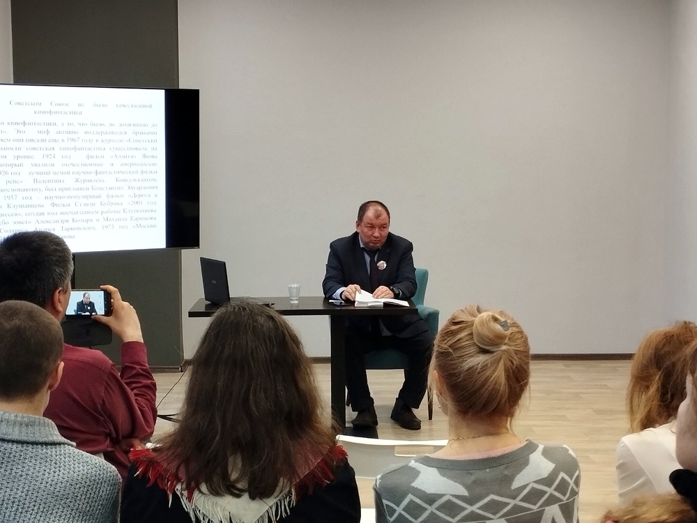 Основной темой для обсуждения стала книга известного российского писателя, журналиста и историка космонавтики Антона Первушина «12 мифов о советской фантастике». Гость и зрители подробно разобрали каждый миф, например, то что советская фантастика была вторичной по отношению к американской или то что в Советском Союзе не было качественной кинофантастики.