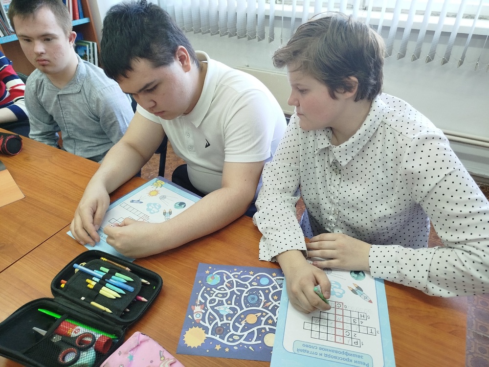 10 апреля в библиотеке «Родник» (б-р Строителей, 32) для учащихся МБОУ «ОШППП №104» прошла увлекательная игровая программа, посвящённая Дню космонавтики. Сотрудники библиотеки организовали познавательную игру-викторину, в ходе которой ребята узнали много интересного о космосе и смогли продемонстрировать свои знания в этой области. После этого детям был предложен целый ряд разнообразных головоломок и игр. Такие как: «помоги космонавту вернуться на Землю», «отгадай слово», а также космические загадки и кроссворды. В конце встречи ребята нарисовали рисунки на тему космонавтики: бескрайние просторы далёкого космоса и бороздящие их ракеты. Встреча прошла в спокойной творческой атмосфере, ребята с удовольствием создавали поделки своими руками, проявляя креативность и фантазию.