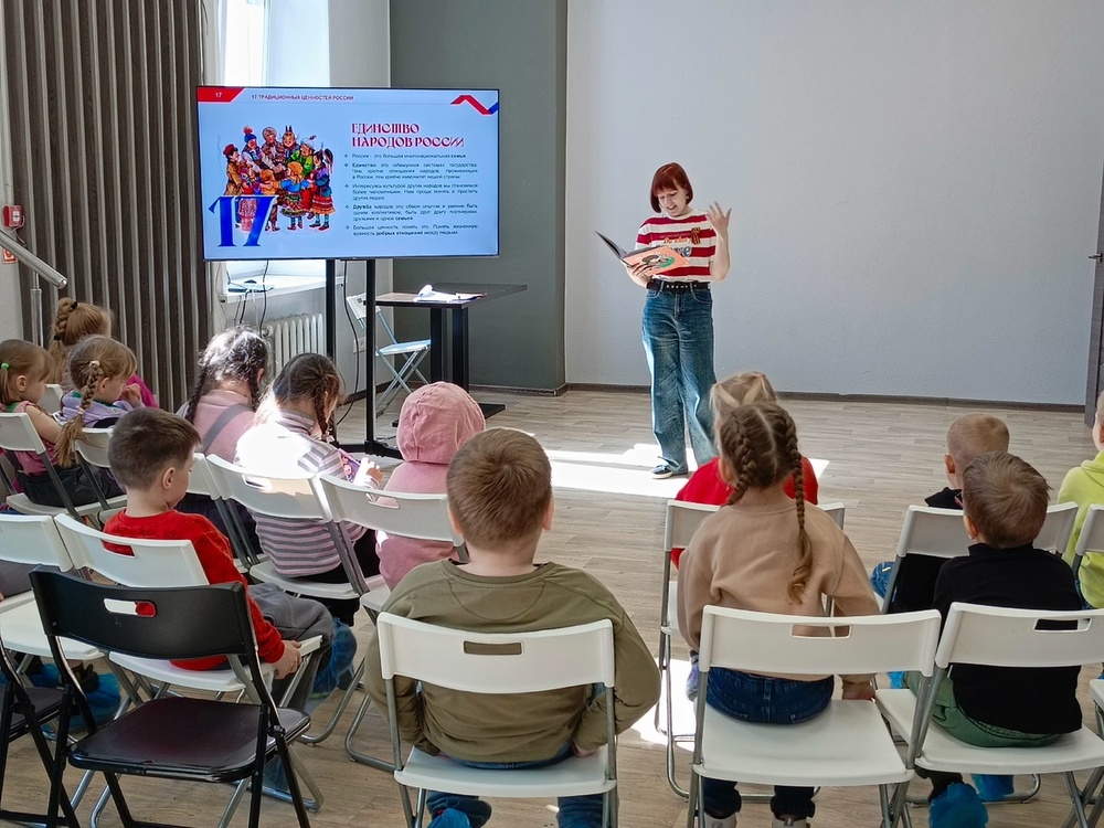 24 апреля, в стенах Библиотеки городских историй (ул. Весенняя, 7), состоялся увлекательный познавательный час «17 традиционных ценностей России» для юных читателей из детского сада №12. Ребята познакомились с такими важными ценностями, как коллективизм, патриотизм, милосердие и уважение к старшим. Участники активно делились своими впечатлениями, рассказывая, какой поступок они считают достойным восхищения, как можно проявлять взаимопомощь и какую роль семья играет в их повседневной жизни. В конце часа специалист вместе с детьми прочитал несколько сказок народов России: тувинскую «Ленивая сова», калмыцкую «Веселый воробей» и аварскую «Три совета». Если вы хотите записаться на подобные мероприятия, звоните по телефону 36-49-47.