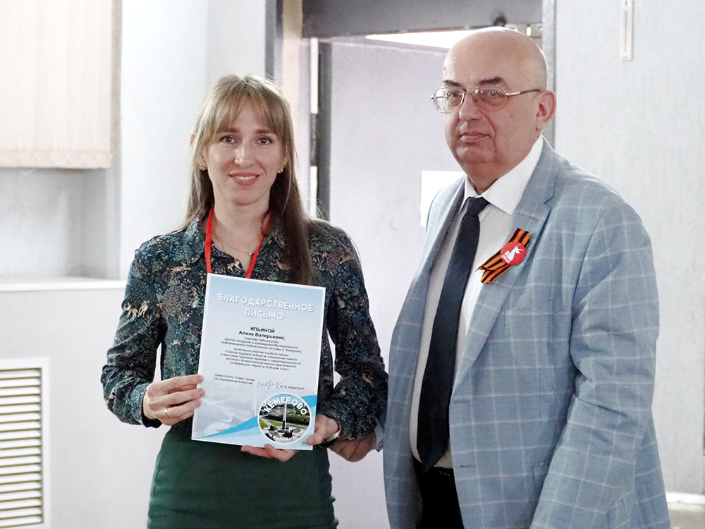 В Центре дополнительного образования детей им. В. Волошиной, сотрудники городских библиотек участвовали в организации работы секции «Города трудовой доблести: сохранение памяти о массовом трудовом героизме и самоотверженности жителей», рамках Всероссийской научно-практической конференции «Фронт в глубоком тылу». На повестке конференции вопросы, посвященные истории Великой Отечественной войны и роли тыла в Победе. Глава города Кемерово Дмитрий Викторович Анисимов отметил, что любит посещать такие мероприятия, поскольку на них устанавливается истина в отношении фактов Великой Отечественной войны. Все кемеровчане в военные годы трудились не покладая рук. Каждый 3 снаряд на войне был начинен кемеровским порохом. На секции № 3 были представлены исследования о городах трудовой доблести тыловых регионов. Участники рассказали о трудовом героизме городов Кузбасса: - Был подвиг тыла равен битве ратной: Прокопьевск - город трудовой доблести. -Трудовые подвиги прокопчан в годы Великой Отечественной Войны. -Вклад малого города в большую Победу (г. Ленинск-Кузнецкий удостоен звания "Город трудовой доблести"). -Трудовая доблесть механического завода. -Труженики тыла невидимые герои. -Формирование фонда мемориальных досок Кузбасса, посвящённых воинским и трудовым подвигам: история, популяризация перспективы. -Залог успешного завтра: от интересов ребенка к профессиональному пути. -Молодой боец трудового фронта Федор Ягунов. Главный библиограф Центра экскурсий и краеведения МАУК «МИБС» Алина Валерьевна Ильина выступала с докладом на тему: «Трудовой фронт глазами женщин». В своем докладе Алина Валерьевна рассказывала о женщинах, которые в военные годы работали на Кемеровских предприятиях: Кемеровском механическом заводе, заводе №393 (Прогресс), на шахте Северной и на швейной фабрике. Женщины работали по 12 часов без выходных и отпусков во имя Победы. Благодарственные письма Алине Валерьевне и Арине Радиковне вручал Заместитель Главы города по социальным вопросам Коваленко Олег Владимирович. Без тыла не было бы фронта, без Кузбасса не было бы Победы!