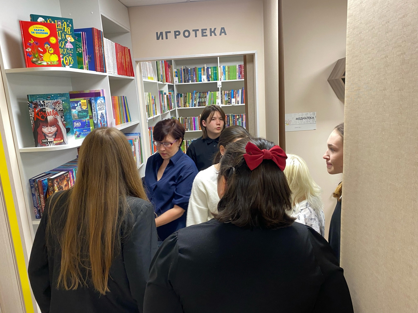 Экскурсия началась с знакомства с обновленными залами библиотеки. Школьники с интересом рассматривали современное оборудование, просторные читальные зоны и уютные уголки для отдыха. Особый восторг вызвали мягкие подоконники-читальни, где так приятно устроиться с книгой, коворкинг с компьютерами и стильный лаунж-зал с удобными диванами.