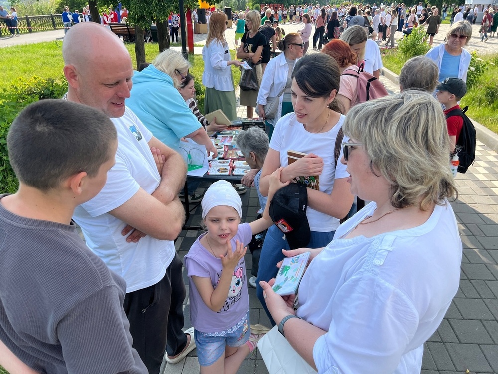 11 июня, в преддверии Дня города и Дня России, сотрудники библиотек «Читай-город» и Библиотеки семейного чтения «Ладушки» организовали яркую площадку на районном празднике. Гостей ждали увлекательные викторины, весёлые загадки в стиле эмодзи о достопримечательностях Кемерова и, конечно же, книги! Каждый мог выбрать себе литературный подарок, а самые активные участники получили памятные призы от библиотек и Территориального управления Кировского района. Благодарим всех за участие и хорошее настроение!