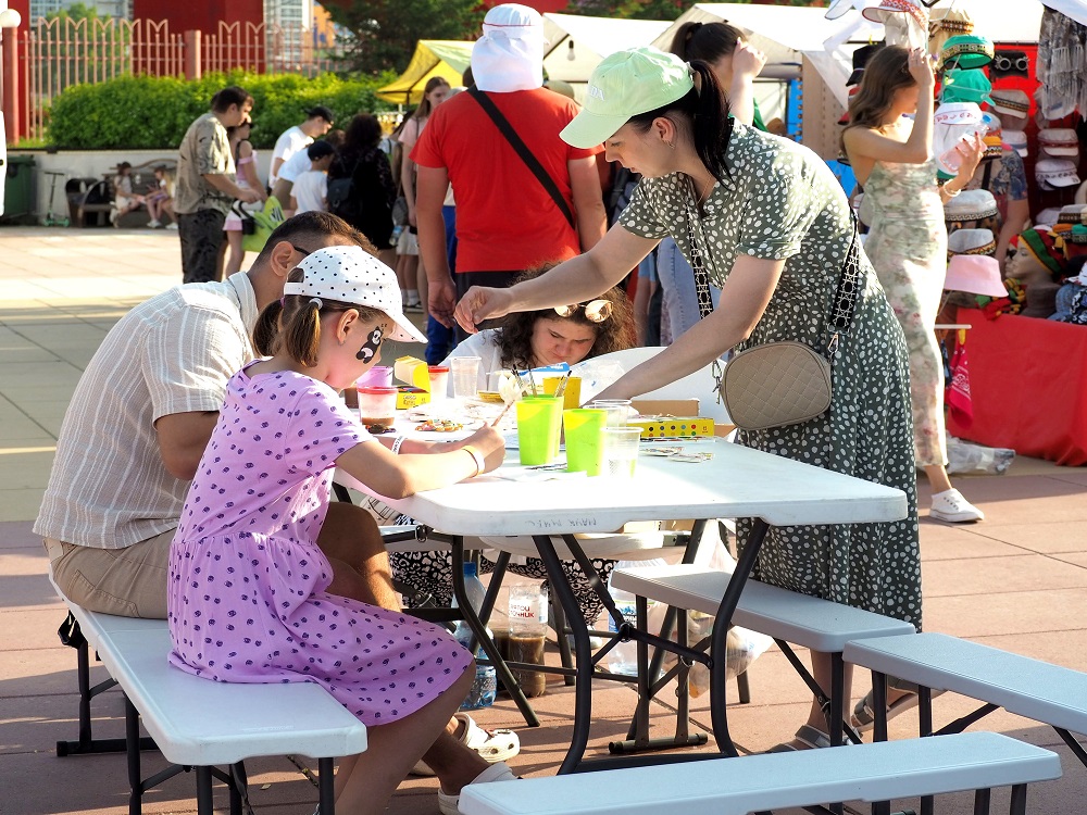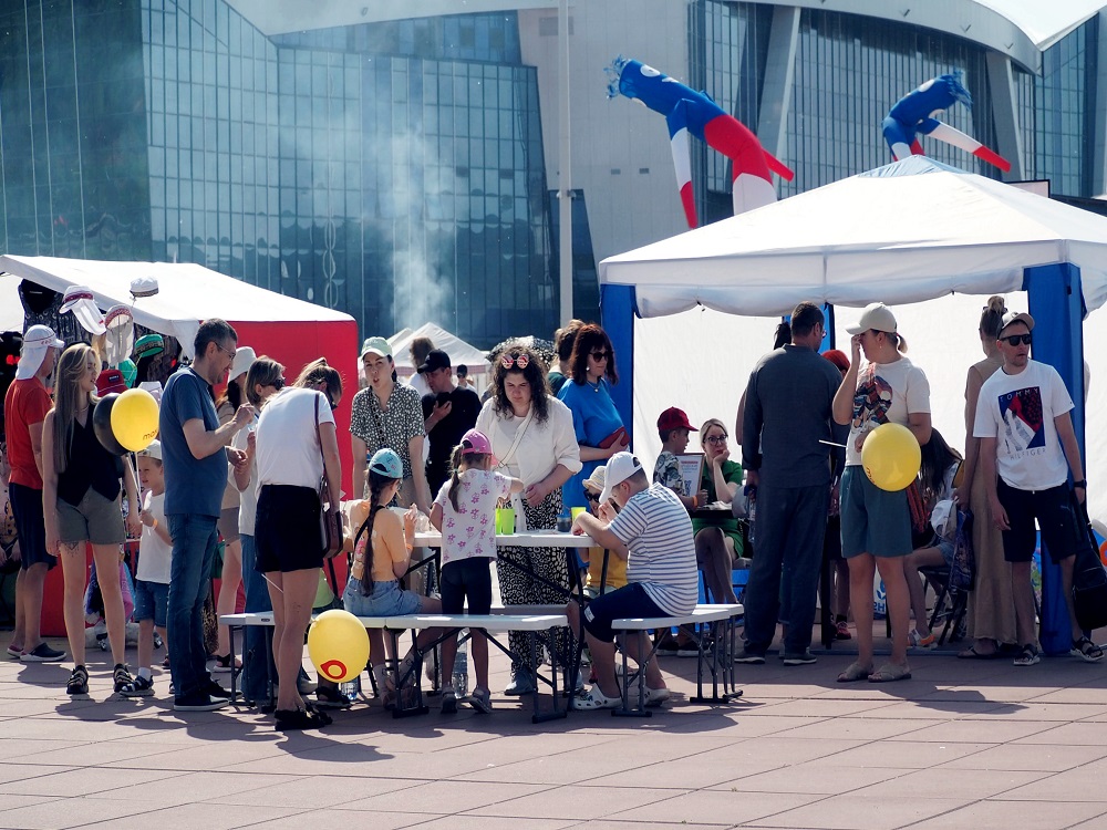 Несмотря на очень жаркий летний день, на Московской площади, было очень многолюдно, все улыбались и с радостью принимали участие во всех развлечениях и забавах.