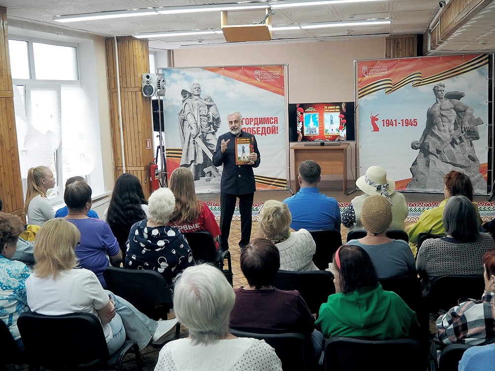 В Детской библиотеке им. А. М.Береснева в рамках международной героико-патриотической экспедиции «От моря до моря. И помнит мир спасенный» состоялась презентация краткого энциклопедического справочника по истории Второй мировой войны 1939-1945 гг. «20 Великих битв Второй мировой войны 1939 – 1945 гг.». Книга издана к 80-летию Победы над фашисткой Германией. Ее представил руководитель проекта «И не прервется поколений связь» патриотического клуба «Альянс-клуб» Сергей Иванович Полонский. Экспедиция стартовала 22 июня в Санкт-Петербурге и отправилась по городам Российской Федерации. Кемерово стал 26-м городом экспедиции, где прошла презентация книги. Экспедиция пройдет через Дальний Восток, Монголию и завершится в Китае. В подготовке справочника принимали участие студенты, школьники, преподаватели истории, профессора вузов. В издании в хронологическом порядке описываются важнейшие сражения Второй мировой войны вплоть до капитуляции Японии 2 сентября 1945 года, означавшей окончание самой кровопролитной войны за всё время существования человечества. Справочник содержит множество карт, фотографий, представлена наградная система, сведения о денежном довольствии военнослужащих, работа военторга во время войны. Отдельные главы посвящены трудовому подвигу советского народа. Некоторые главы появились после встреч с молодежью, по их запросам. После встреч с читателями студенты подготовили раздел о зарплатной системе в годы Великой Отечественной войны, о жизни на оккупированных территориях. Уникальность этого проекта в том, что большая часть материала подготовлена молодежью – для молодежи. Гостей встречи ждал увлекательный рассказ увлеченного человека. Сергей Иванович рассказывал о книге, о сражениях, имеющих решающее значение в ходе войны, о современном отношении к событиям военной поры, общался с аудиторией, задавал вопросы. Самый активный участник встречи, Кирилл, студент КузГТУ, получил в подарок книгу с автографом. Книга адресована самому широкому кругу читателей – от детей младшего школьного возраста до студентов образовательных организаций высшего образования. Но ей заинтересовались и взрослые читатели, присутствовавшие в зале. Сергея Ивановича долго не отпускали зрители: расспрашивали о том, как готовилась книга, будет ли продолжение, благодарили за интересный рассказ. Экземпляр краткого энциклопедического справочника по истории Второй мировой войны 1939-1945 гг. «20 Великих битв Второй мировой войны 1939 – 1945 гг.» вскоре будет доступен и читателям кемеровских библиотек.