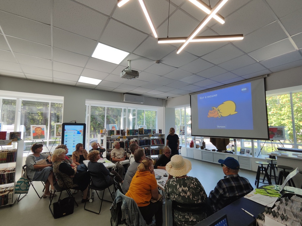 14 августа 2025 года в библиотеке «Книжная радуга» (ул. Новогодняя, 2) прошло увлекательное мероприятие по финансовой грамотности в формате популярной викторины «Своя игра». Организаторами выступили специалисты Министерства финансов Кузбасса, а участниками – члены Совета ветеранов жилого района Кедровка.