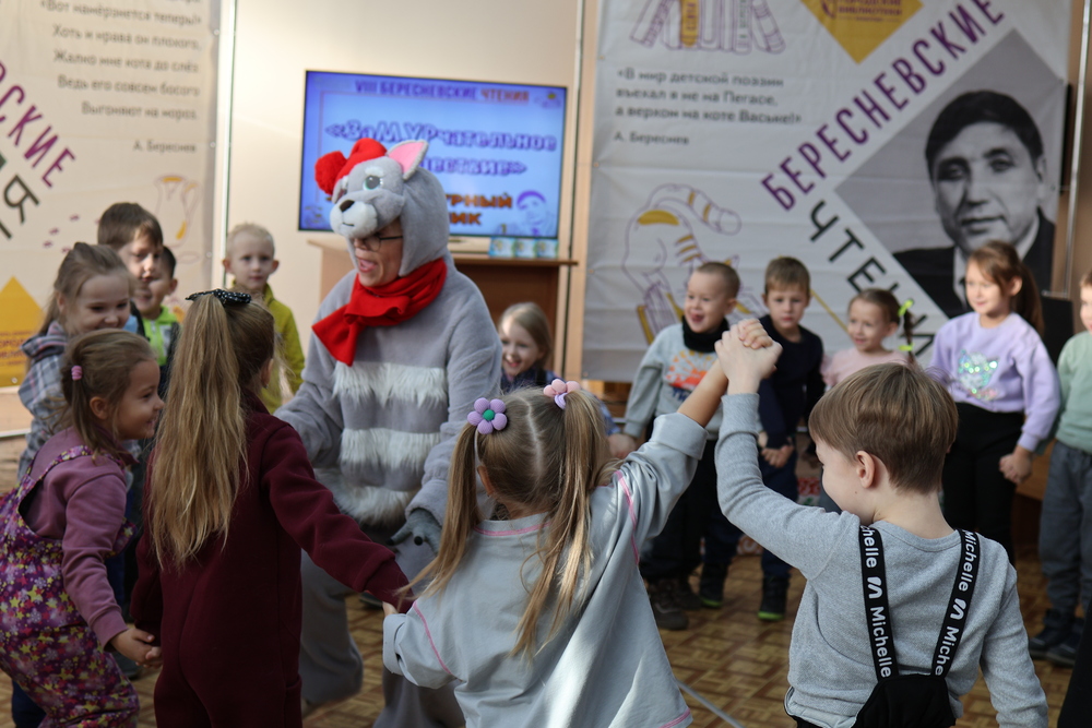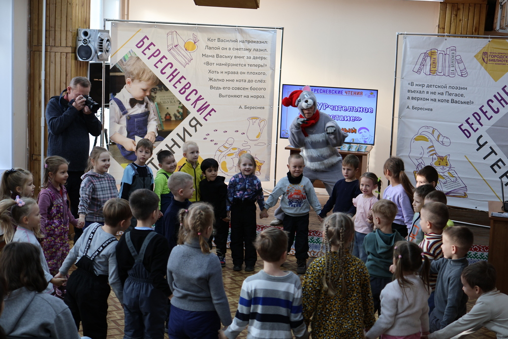 В Детской библиотеке им. А. М. Береснева с большим успехом прошли VIII Бересневские чтения, традиционно посвященные творчеству кузбасского детского поэта Александра Береснева и детской литературе Кузбасса. Главной темой этого года стала «Кошачья тема», объединившая юных читателей в увлекательное литературное приключение. На мероприятие юных гостей приглашал Кот Ученый, а открывал программу Чтений кот Василий – самый известный герой стихотворения Александра Береснева. Он отправился с малышами из детского сада № 198 в «ЗаМУРчательное путешествие» по страницам книг поэта, стремясь загладить свою вину за «лапу в сметане». Васька с блеском выполнил задачу: теперь малыши знают, что Александр Михайлович Береснев когда-то был деревенским мальчишкой Сашей, и все его стихи родом из детства. Вместе с котом Василием дети путешествовали по стихам Береснева, играя в «Кошки-мышки», собирая грибы и определяя дары огорода. Волшебный клубок Васьки привёл их прямо в лес, где ребята угадывали строчки произведений поэта. Путешествие завершилось вручением особенных читательских билетов, фотосессией с Василием и искренним желанием ребят поскорее вновь прийти в гости к поэту в любимую библиотеку. В рамках Чтений также состоялась концерт-презентация книги стихов Татьяны Болотовой «Странная сказка». Участники семейного авторского дуэта «Де’СанТ» – Татьяна и Александр Болотовы – рассказали историю появления этой книги и познакомили с работами юных художников-иллюстраторов, учеников Детской школы искусств № 51 пгт Яя. Маленькие читатели насладились стихами в исполнении автора, слушали детские песни, написанные известными российскими бардами, и авторские мелодии, активно подпевали и танцевали. Добрые и веселые стихи, сотканные из реальных событий детства, помогли ребятам по-новому взглянуть на окружающий мир, полный чудес и волшебства! Интригу добавил литературный квест «Коты ведут расследование», в ходе которого юным детективам предстояло установить кота-проказника, полакомившегося сметаной. Пять книжных котов – Честер, Алекс, Пончик, кот Ученый и Шмяк – делились уликами за успешно выполненные ребятами задания. Расследование было успешно завершено, и виновник установлен. Весь день в библиотеке работали тематические выставки, где можно было познакомиться с книгами о котах, рассмотреть веселые и яркие картины, а также многочисленные разнообразные фигурки котов и кошек. Гости могли принять участие в мастер-классах «Кис! Брысь! Мяу!», создавая котиков в технике оригами, расписывая гипсовые фигурки или деревянные значки. На экскурсии в музее поэта читателей встречала новая фотозона с деревенским акцентом, навеянная стихотворением А. М. Береснева «В родном краю». В рамках VIII Бересневских чтений был дан старт конкурсу детских рисунков – иллюстраций стихов А. М. Береснева. Прием работ продлится до 25 декабря 2025 года, а итоги будут подведены 29 января 2026 года, в день 90-летнего юбилея поэта. Можно с уверенностью сказать, что читатели, их родители, коллеги и все гости, посетившие библиотеку в этот день, надолго запомнят этот яркий и душевный праздник поэзии и кошачьей магии!