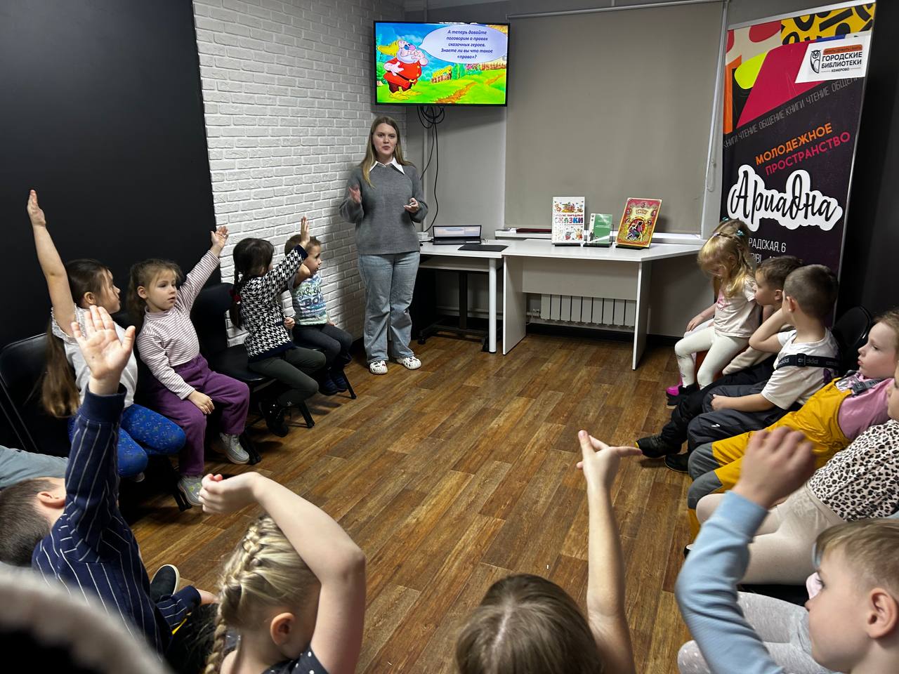 18 ноября, в рамках празднования Всемирного дня ребенка, в библиотеке «Ариадна» (ул. Волгоградская, 6) прошел познавательно-игровой час «Мир детства». Участниками мероприятия стали юные гости из МБДОУ № 183, которым была предоставлена уникальная возможность ближе познакомиться со своими правами и обязанностями. Программа включала разнообразные увлекательные игры, викторины и интерактивные задания, направленные на формирование чувства ответственности и уважения к окружающим. Особое внимание было уделено заданиям, в ходе которых ребята вместе со сказочными героями разбирали реальные жизненные ситуации, иллюстрирующие нарушение детских прав. Это позволило детям лучше понять важность соблюдения прав каждого члена общества и сформировать чувство ответственности перед окружающими.