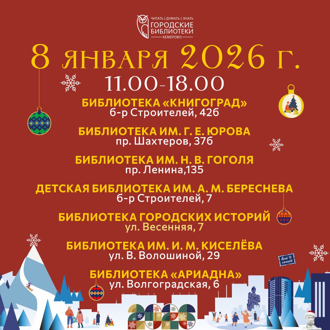 05.01.2026 г. 11.00-18.00. - Детская библиотека им. А. М. Береснева (б-р Строителей, 7).