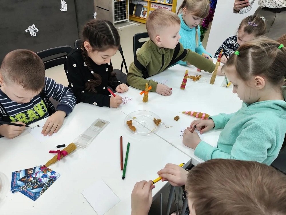 25 декабря Библиотека семейного чтения «Книжная радуга» (ул. Новогодняя, 2) наполнилась звонким смехом и предвкушением чуда! Её новогодний наряд собрал вокруг себя воспитанников детского сада МБДОУ №69, которые окунулись в настоящую зимнюю сказку. В гости к юным читателям пожаловал сам Дедушка Мороз с очаровательной Снегурочкой, а неожиданным, но веселым сюрпризом стало появление озорной Бабы-Яги! Ребята с восторгом участвовали в зажигательных конкурсах «Снежки» и «Метелка», с легкостью отгадывали зимние загадки, наполняя зал смехом и радостью. Кульминацией праздника стал волшебный мастер-класс по созданию «Рождественских свечей». Маленькие умельцы, словно прилежные пчелки, с увлечением превращали листы вощины в дивные ароматные елочки. Каждую свечу они дополняли самыми теплыми и искренними пожеланиями на красочных открытках, готовясь подарить частичку своего тепла близким. Телефон для справок: 69-26-93.