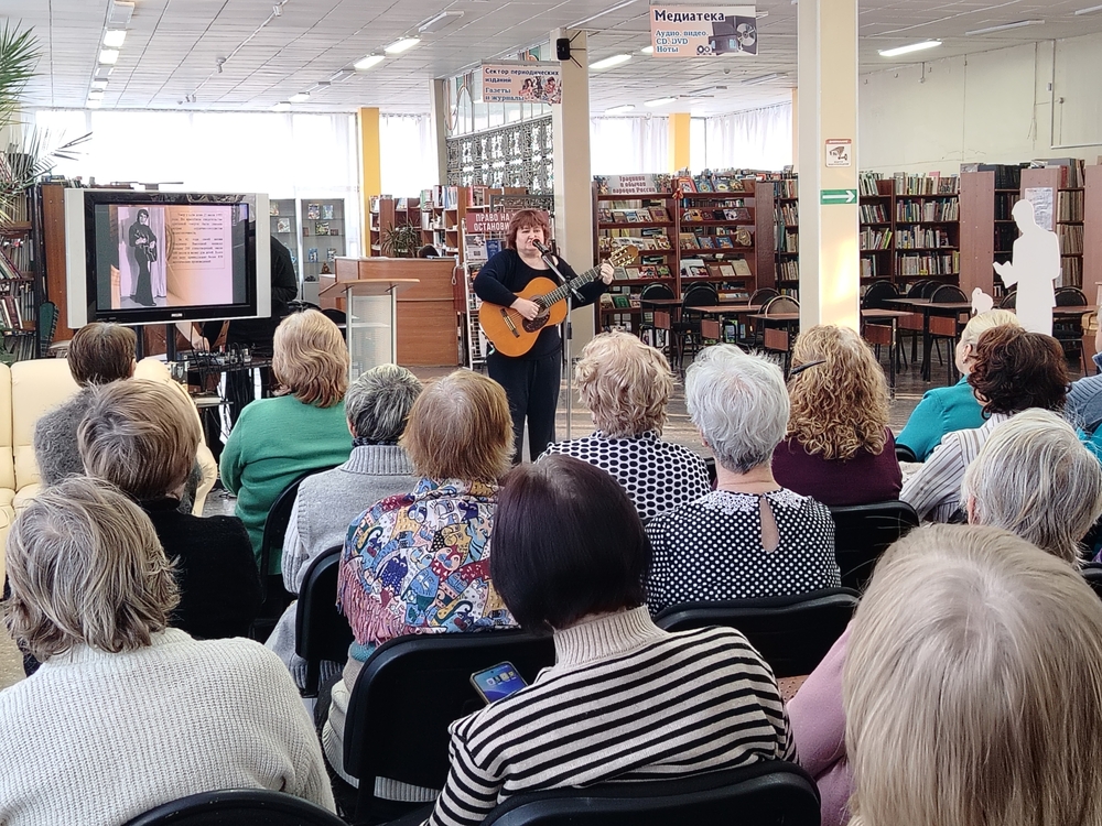 - 26 января, в Библиотеке им. Н.В. Гоголя прошла Литературно-музыкальная встреча «Мне есть что спеть…», а в Библиотеке им. Г.Е. Юрова провела музыкально-поэтический час «Вертикальная жизнь поэта» на базе КЦСОН Рудничного района.