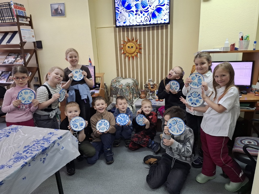 В библиотеке «Книгоград» (бр. Строителей, 42б) для первоклассников МБОУ «Гимназия № 25» устроили «Масленичный разгуляй». Ребята узнали о значении каждого дня масленичной недели и народных приметах, расписали гипсовые тарелочки в стиле гжель.