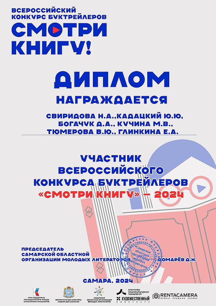 Всероссийский конкурс буктрейлеров «Смотри книгу» проводит Самарская областная организация молодых литераторов. Конкурс проводится в рамках программы «Литературные таланты России», реализуемой при поддержке Президентского фонда культурных инициатив.