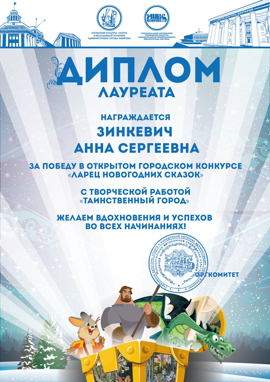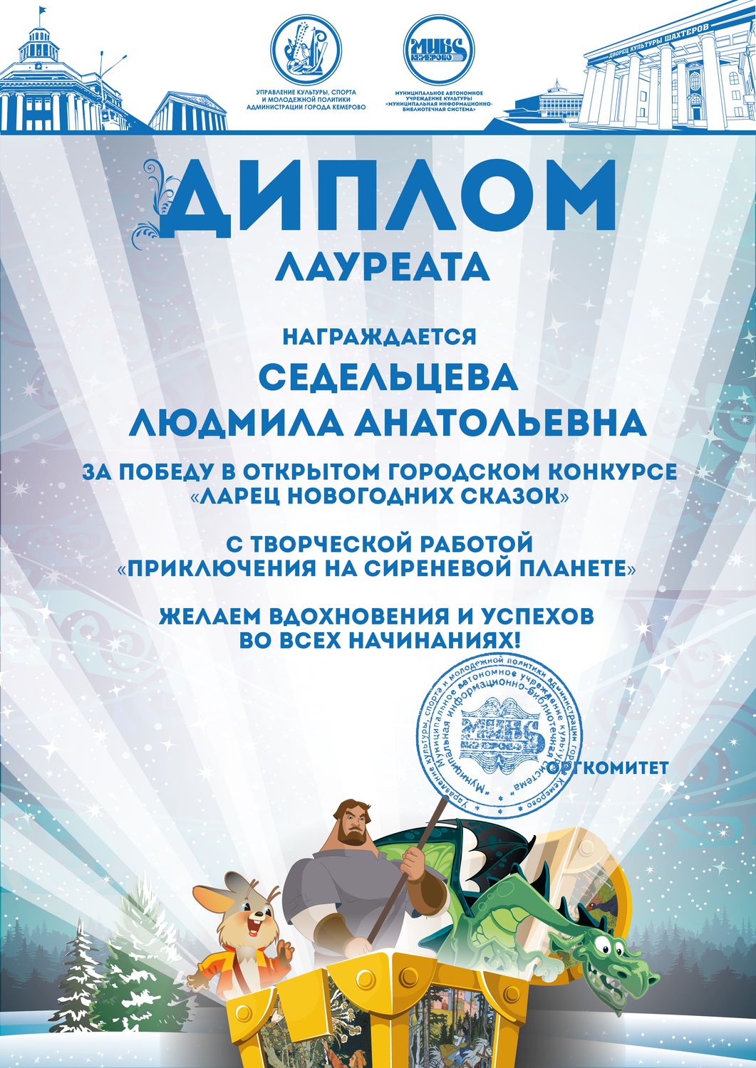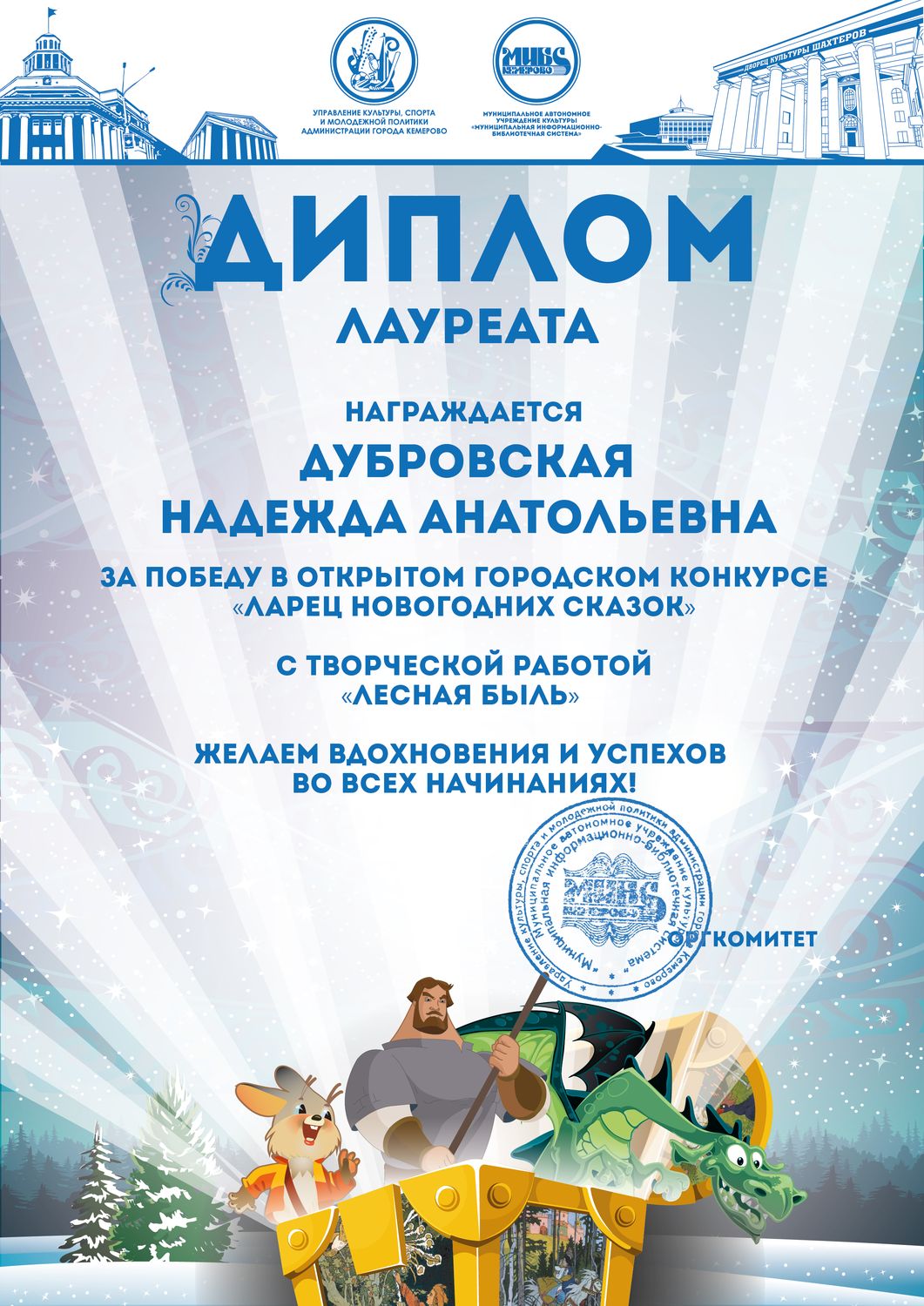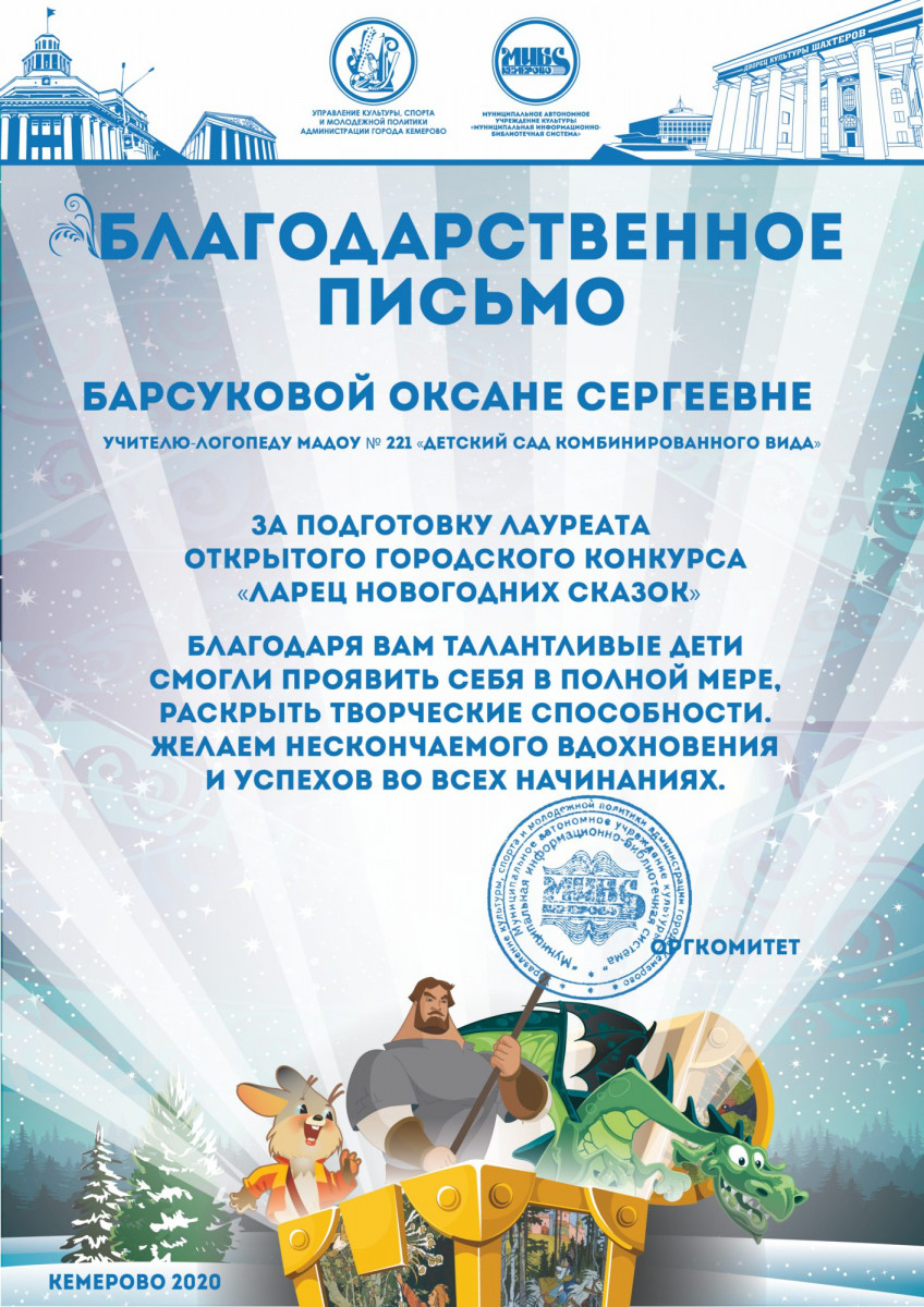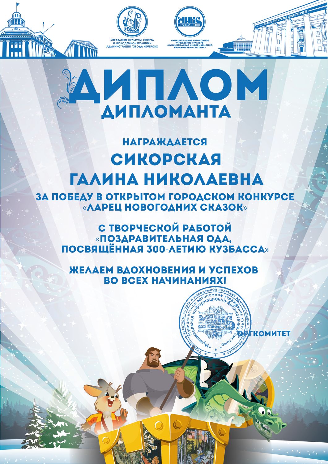 Бикузина Галина Ивановна. Творческая работа «Сказка о Кузбасской столице и новогодней ёлке»