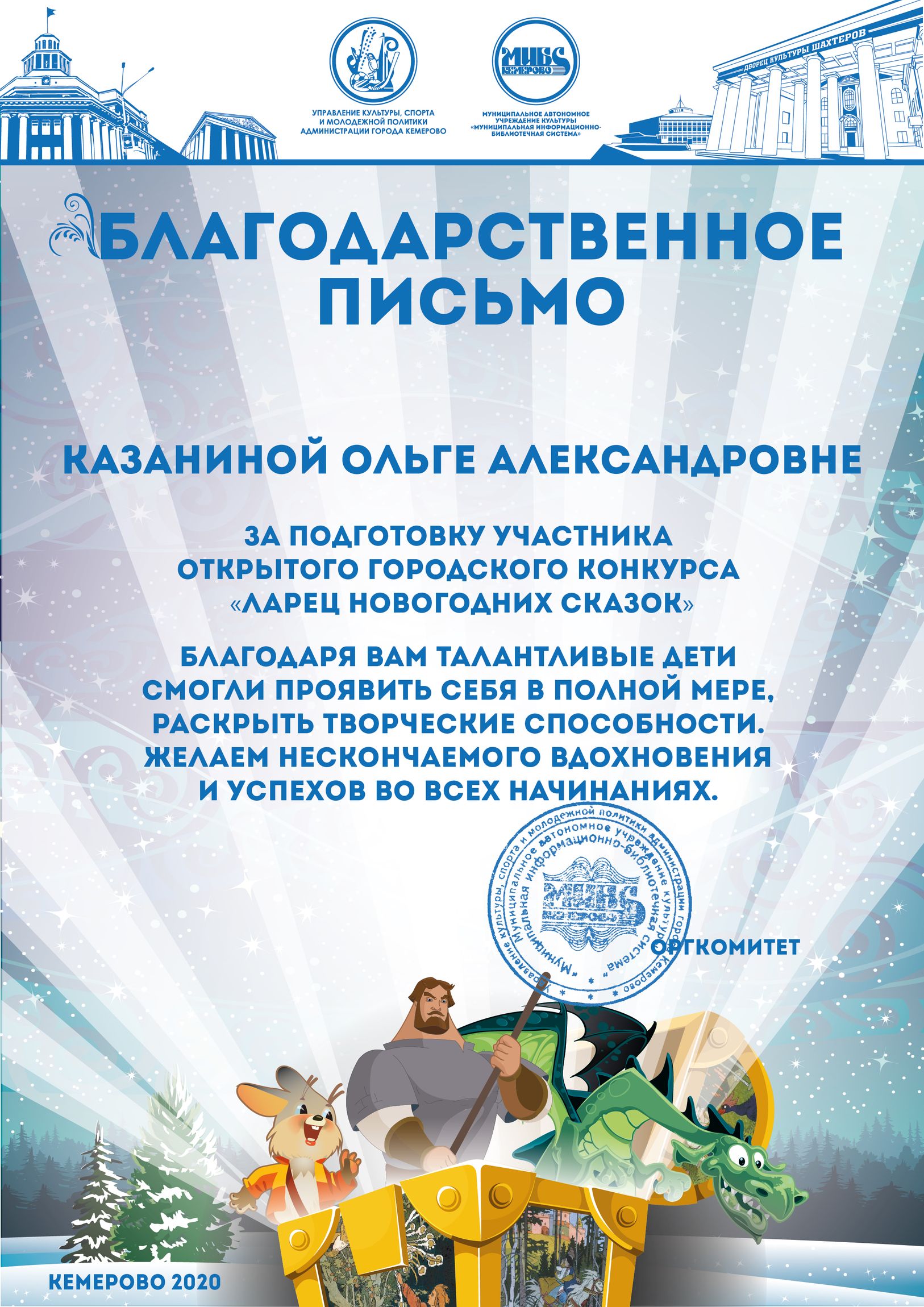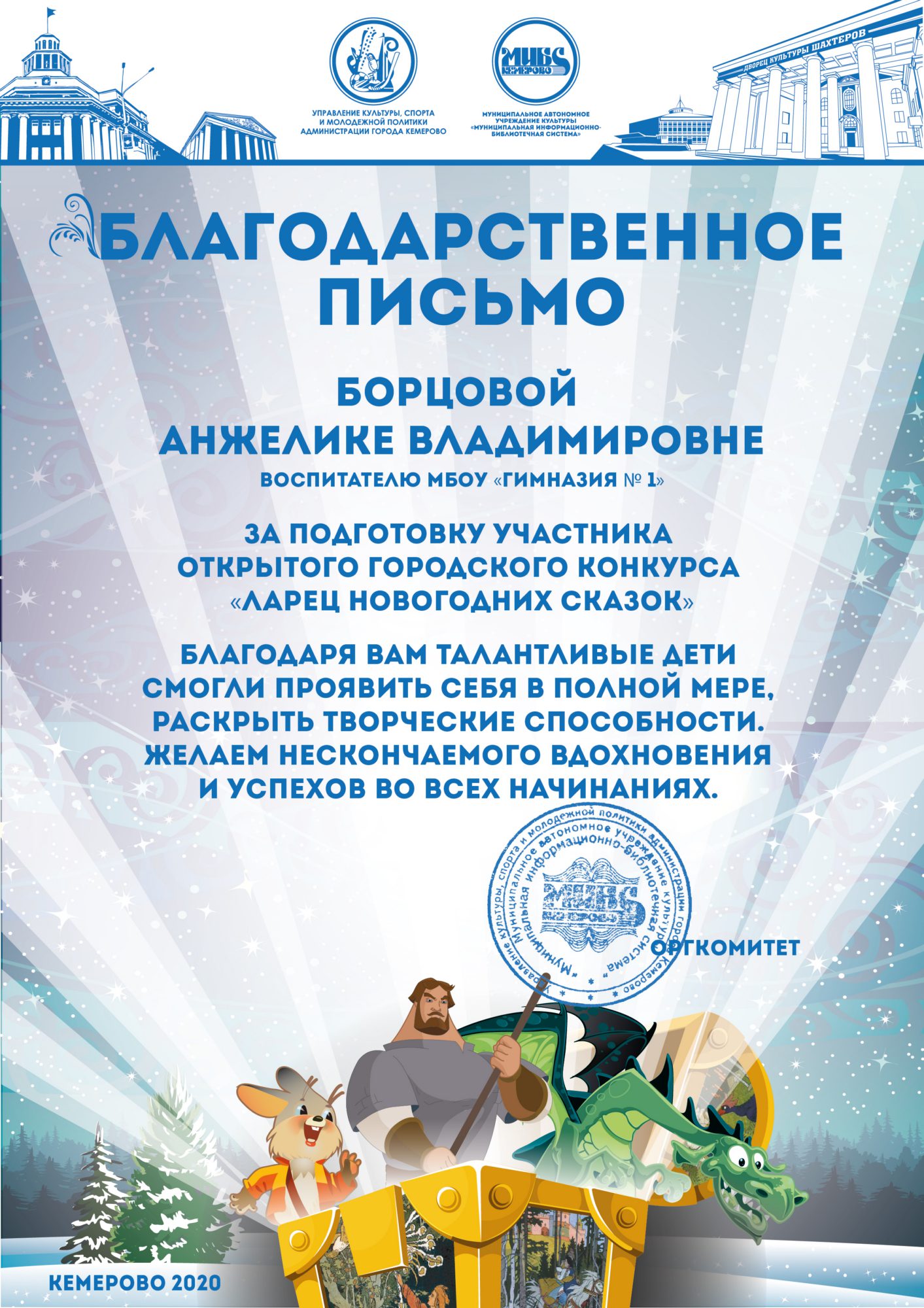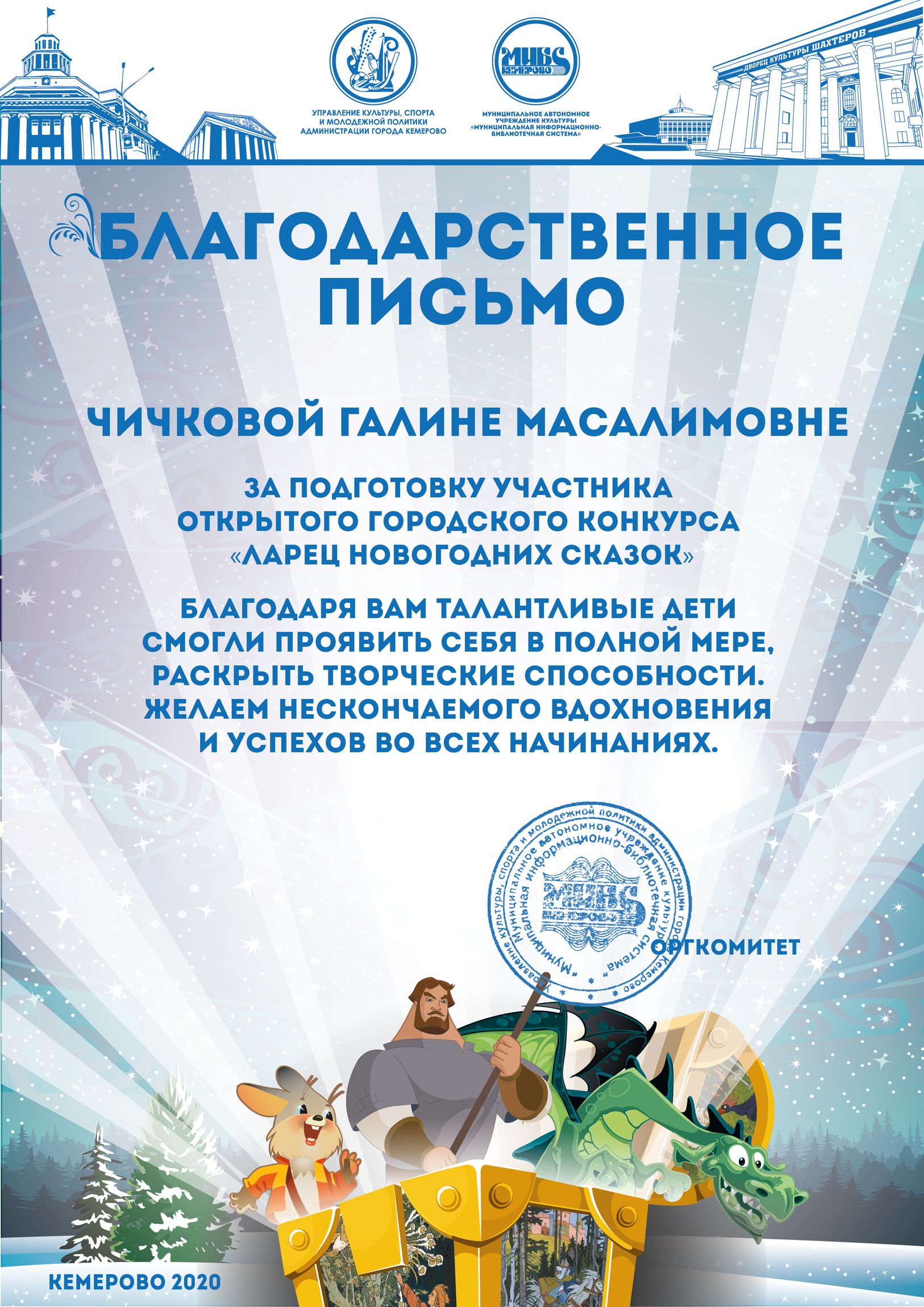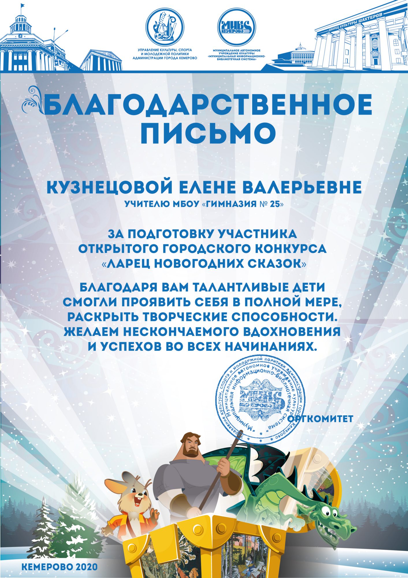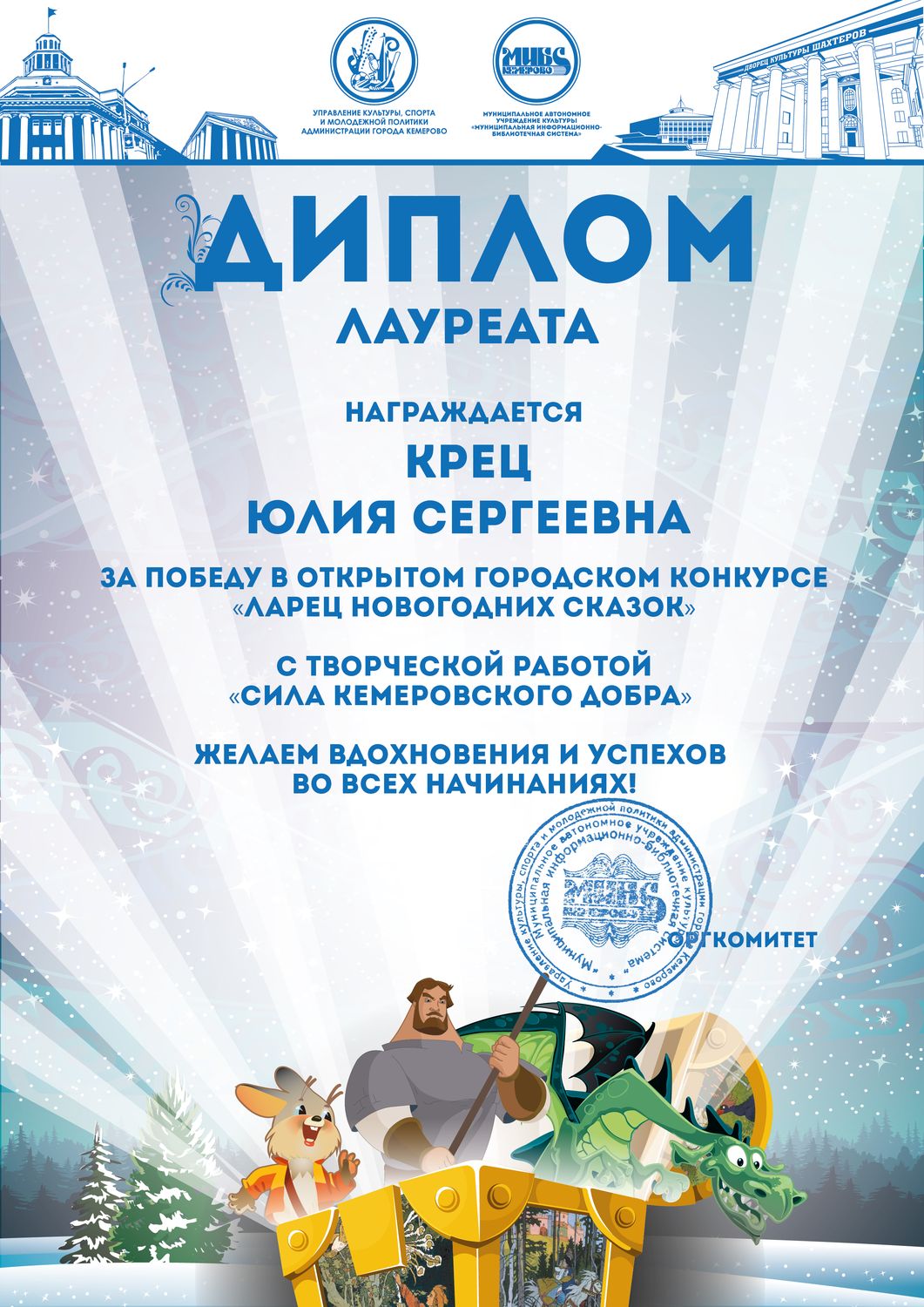 Бикузина Галина Ивановна. Творческая работа «Сказка о Кузбасской столице и новогодней ёлке»
