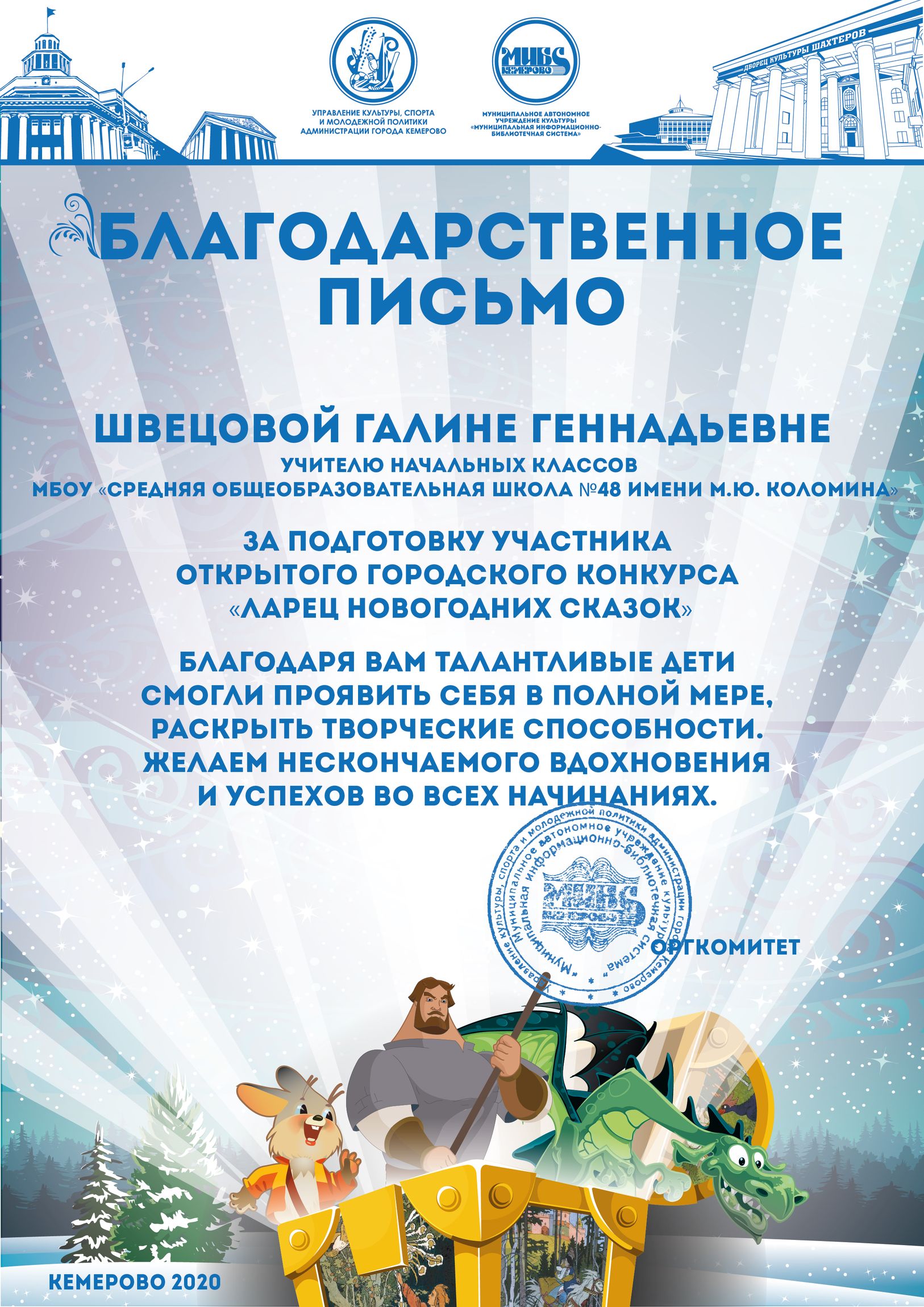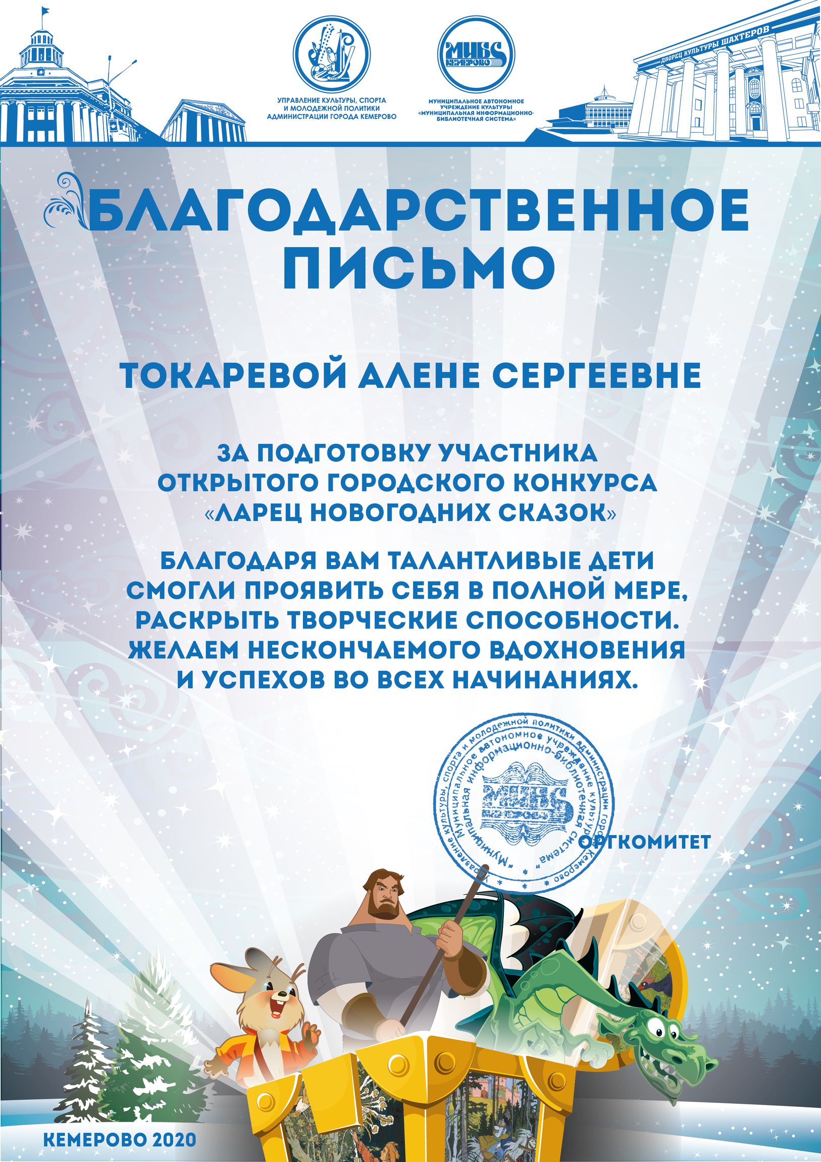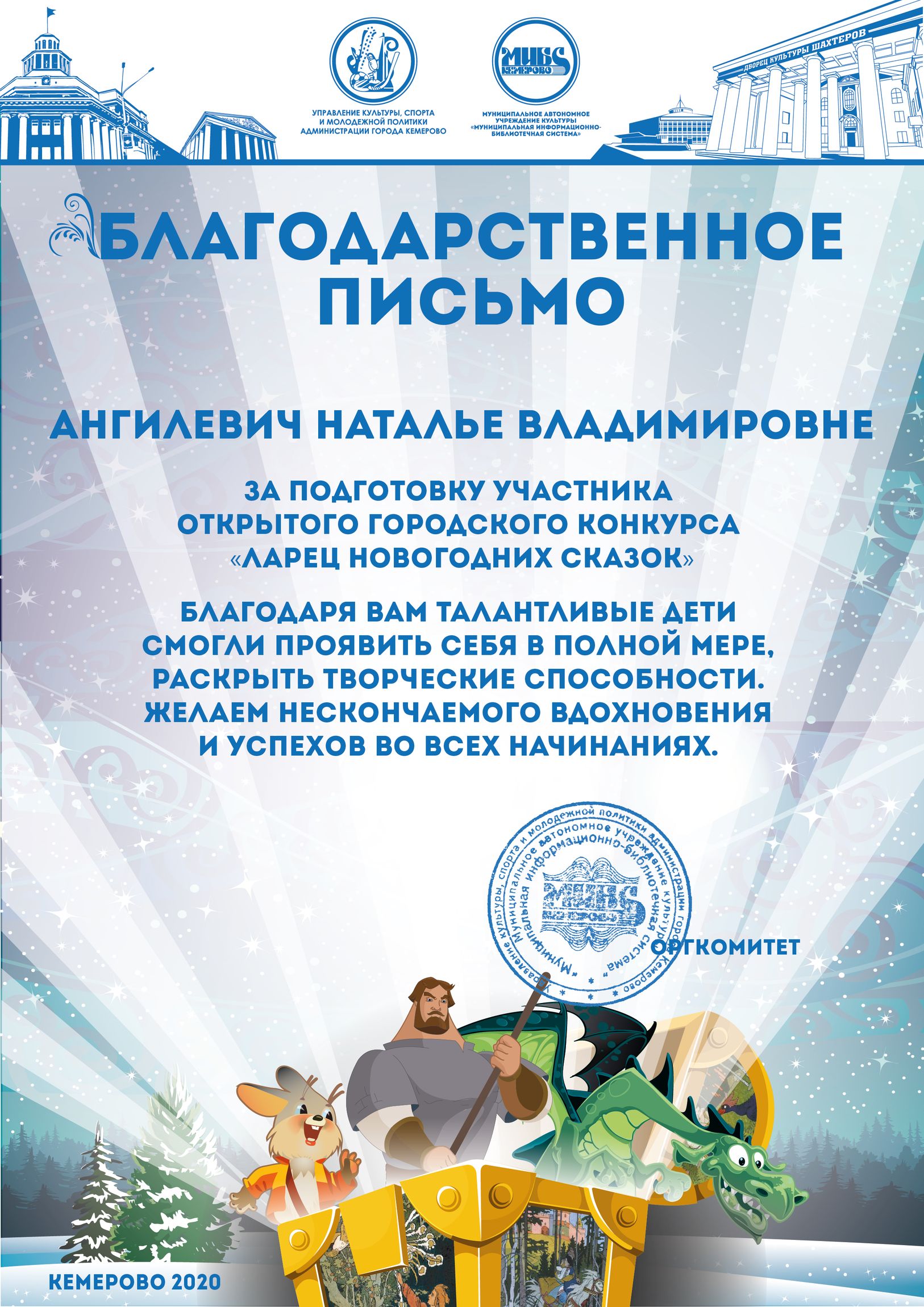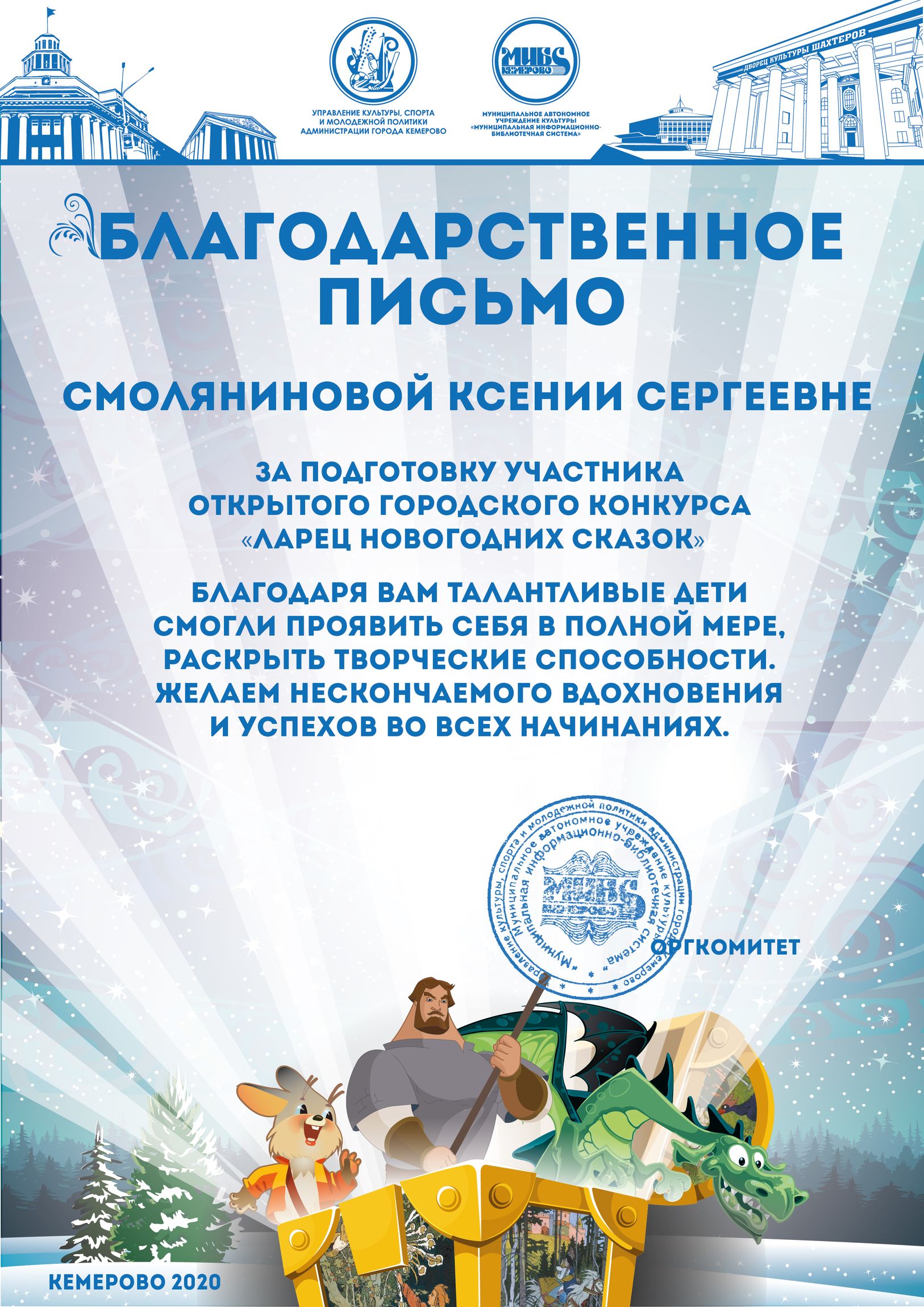 Бикузина Галина Ивановна. Творческая работа «Сказка о Кузбасской столице и новогодней ёлке»