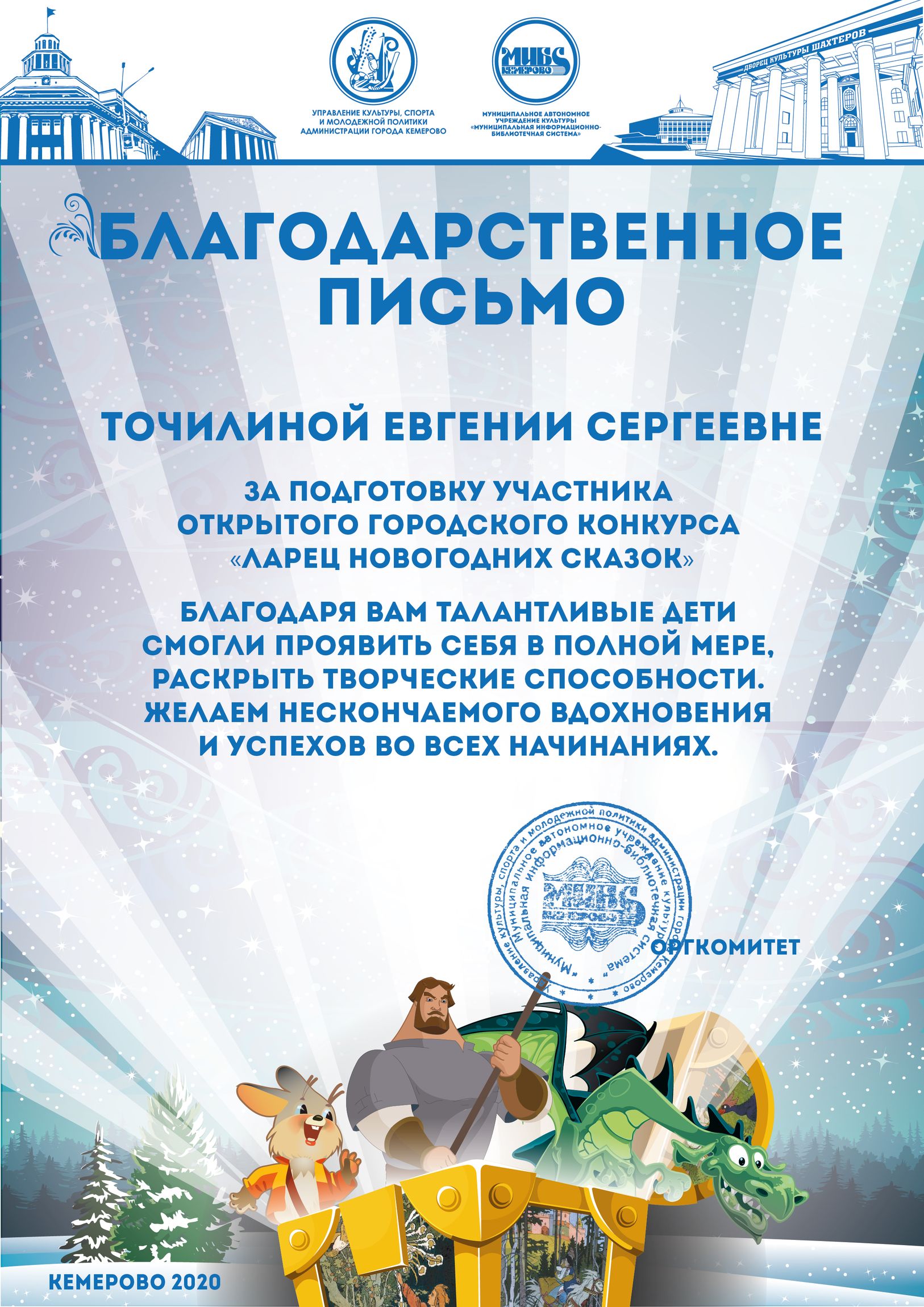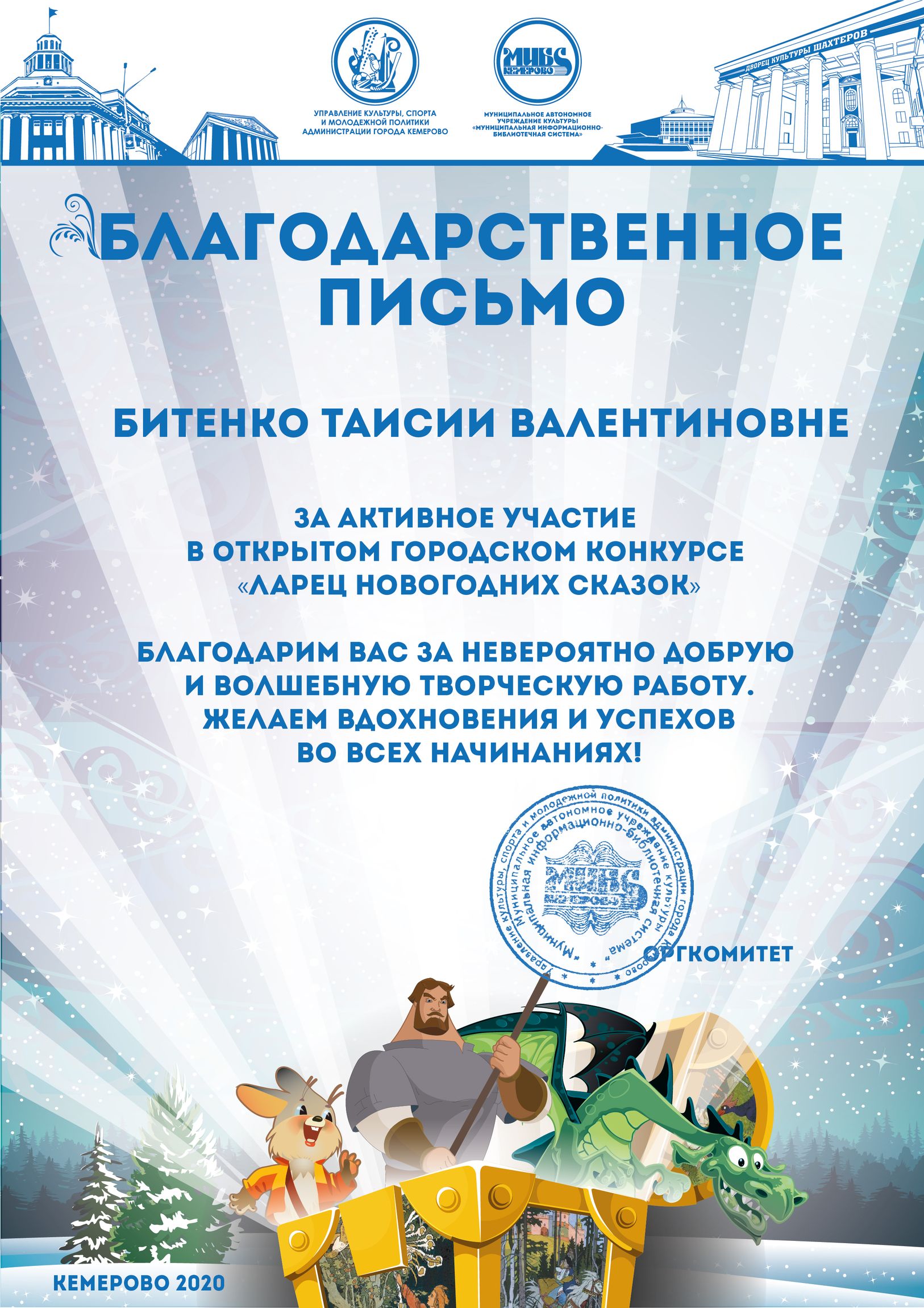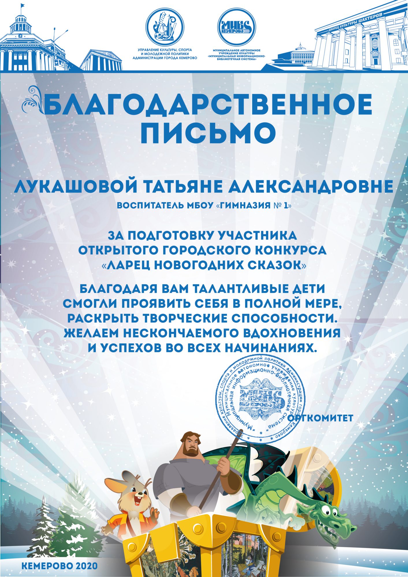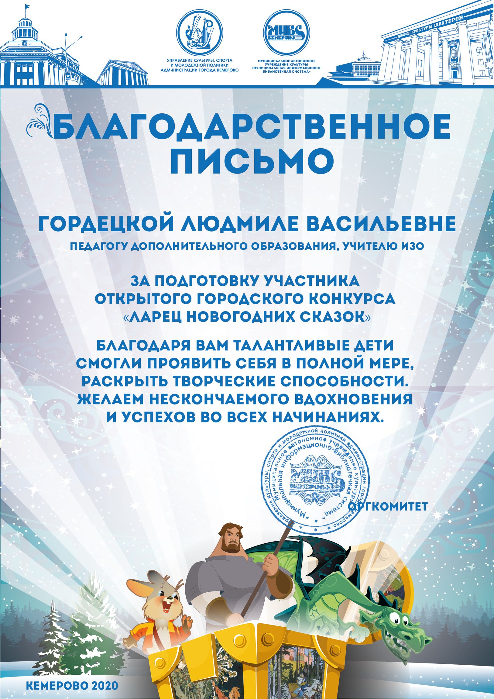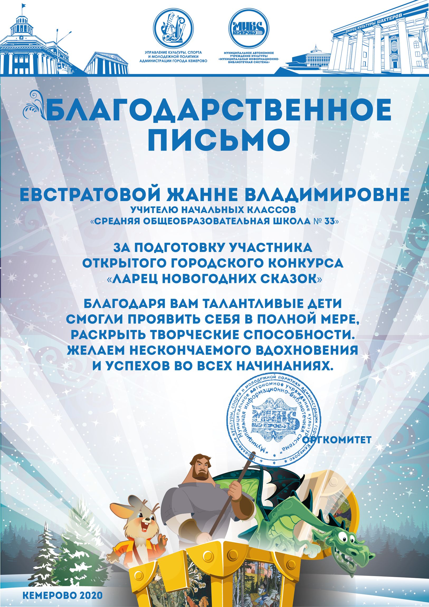 Бикузина Галина Ивановна. Творческая работа «Сказка о Кузбасской столице и новогодней ёлке»