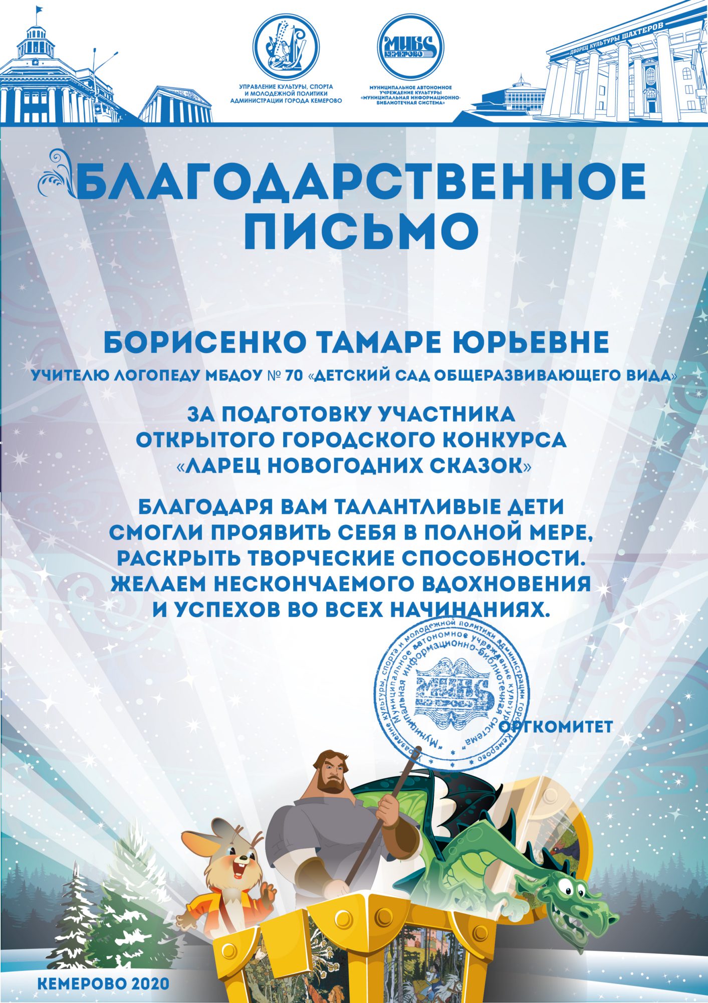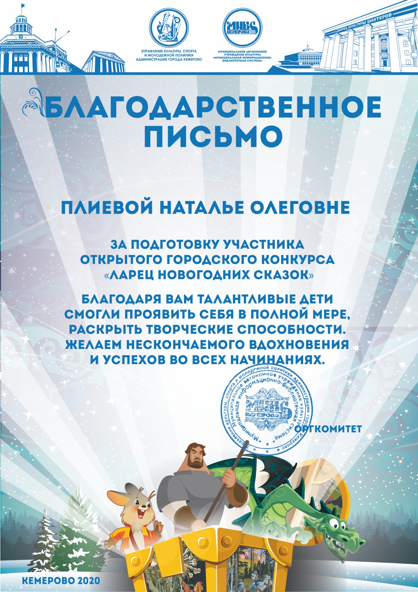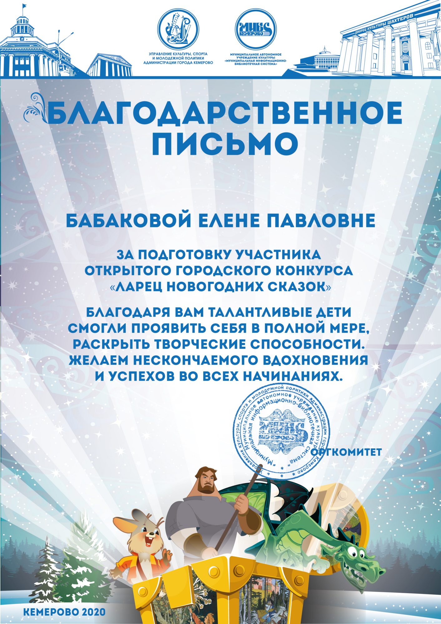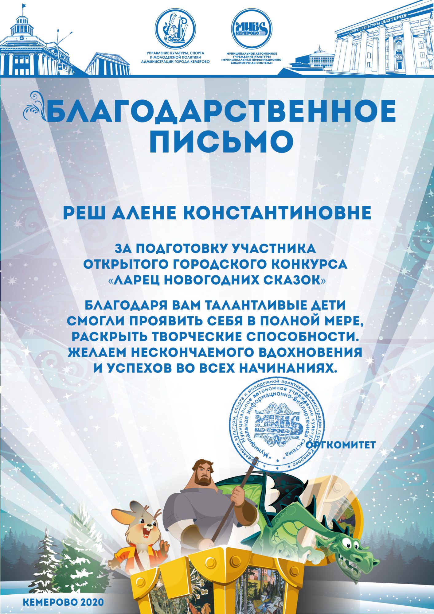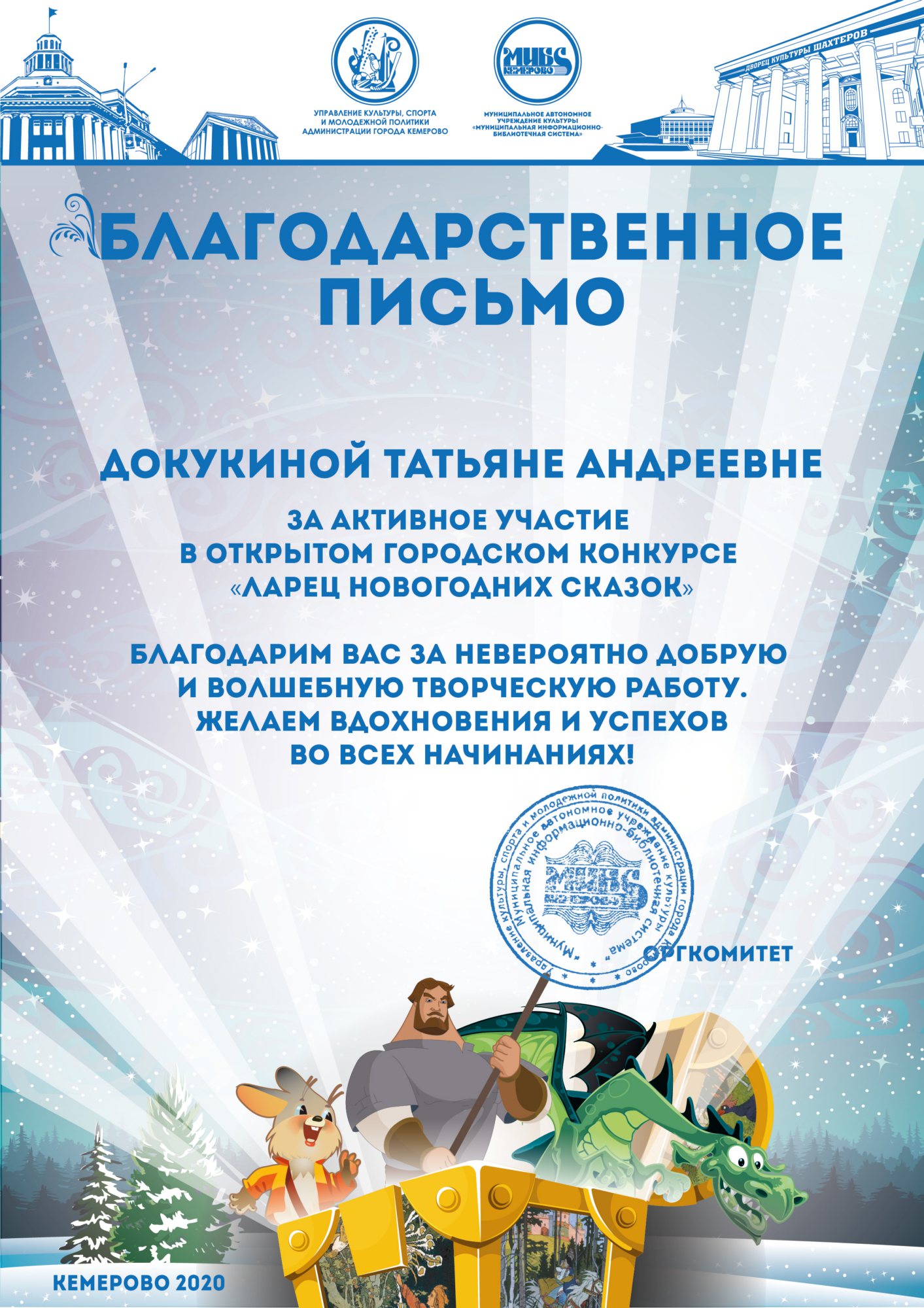 Бикузина Галина Ивановна. Творческая работа «Сказка о Кузбасской столице и новогодней ёлке»