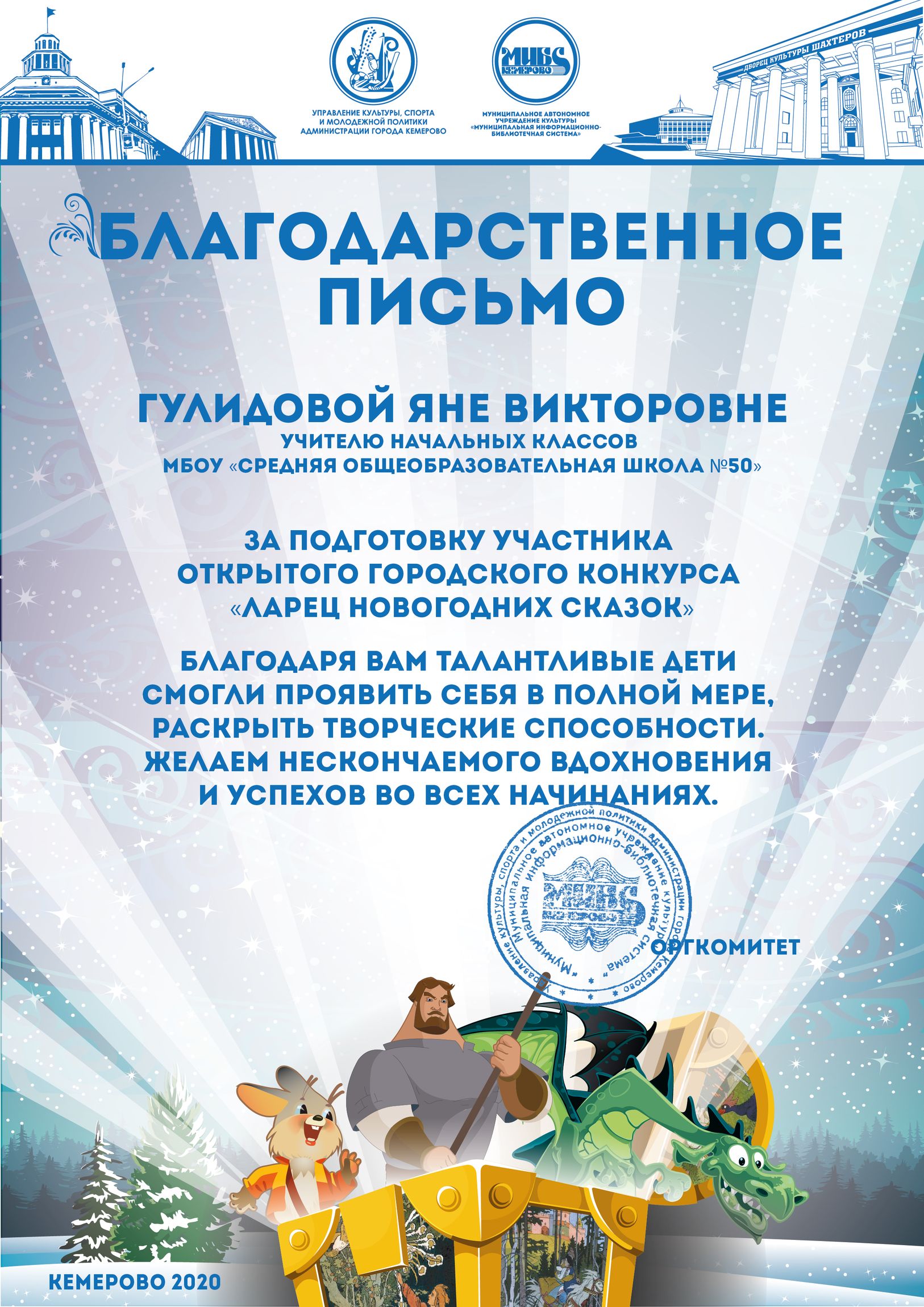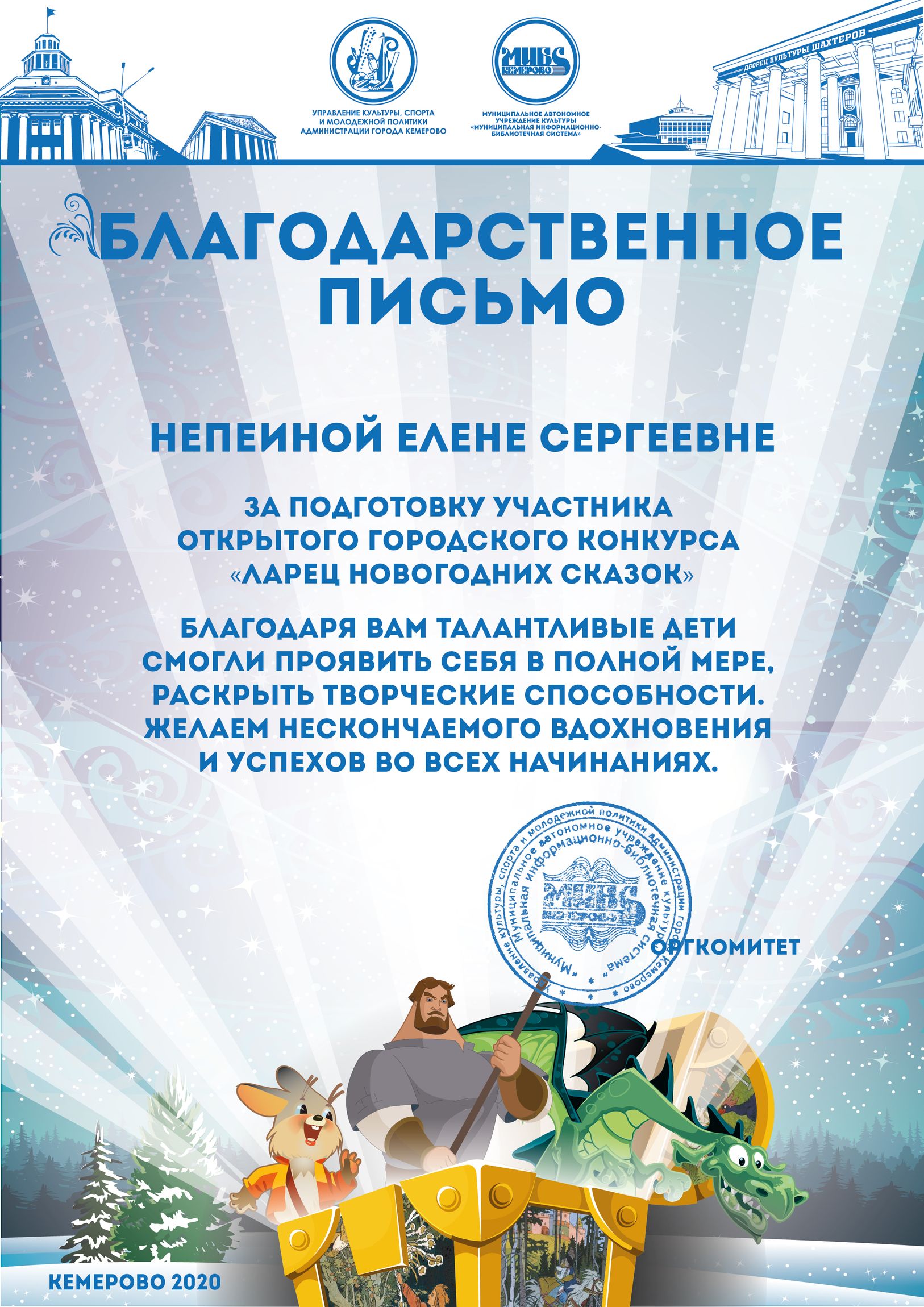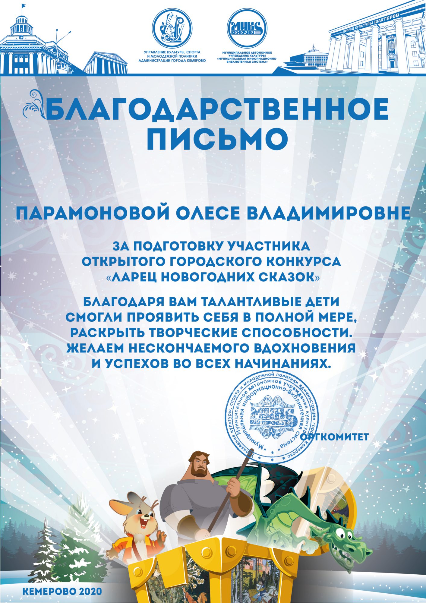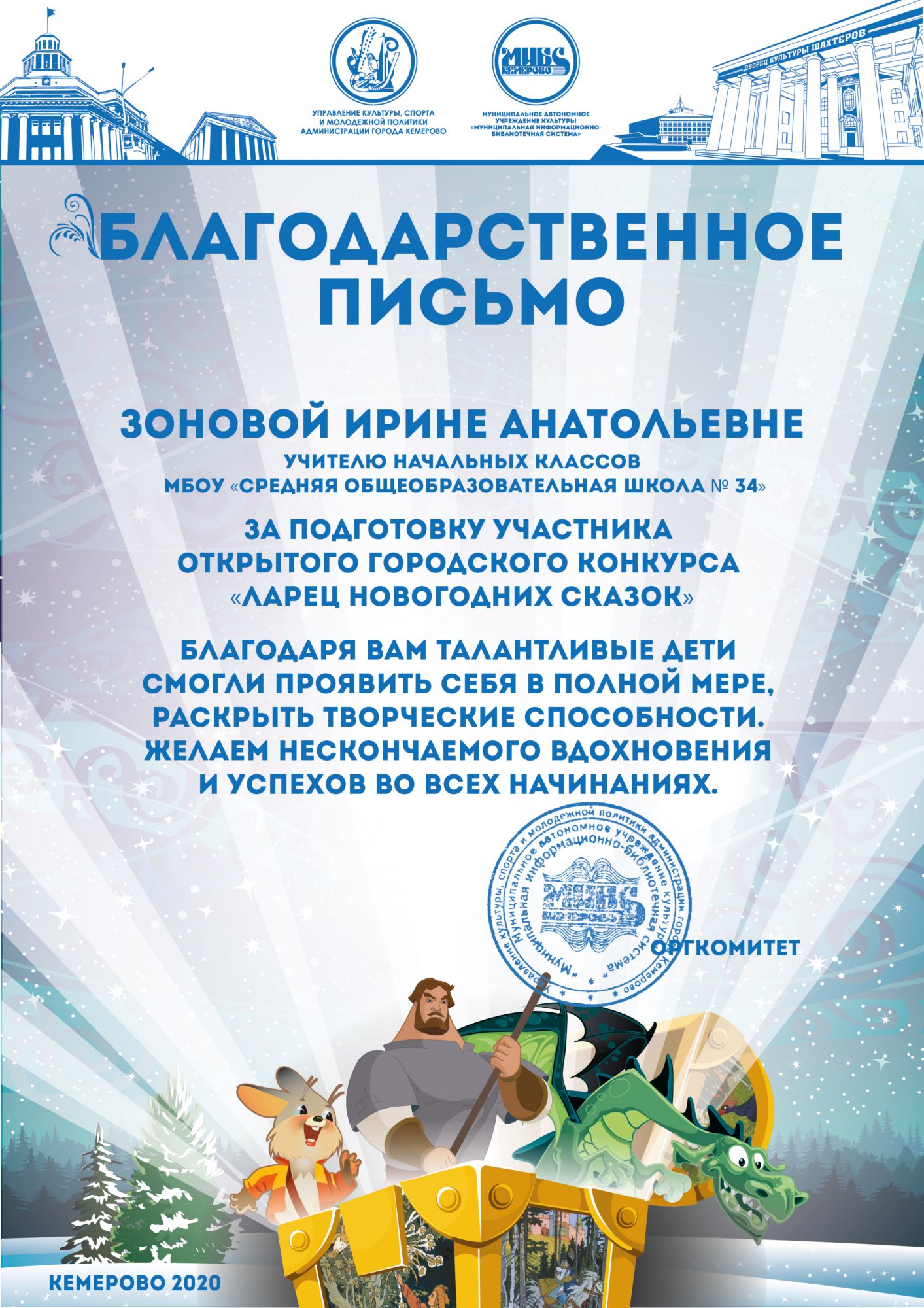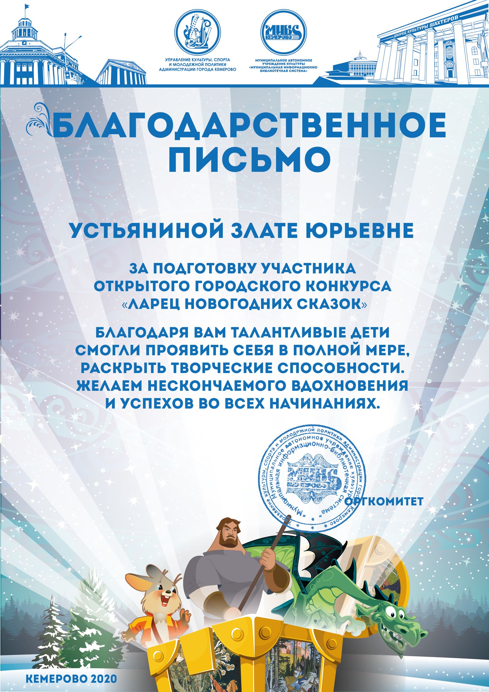 Бикузина Галина Ивановна. Творческая работа «Сказка о Кузбасской столице и новогодней ёлке»