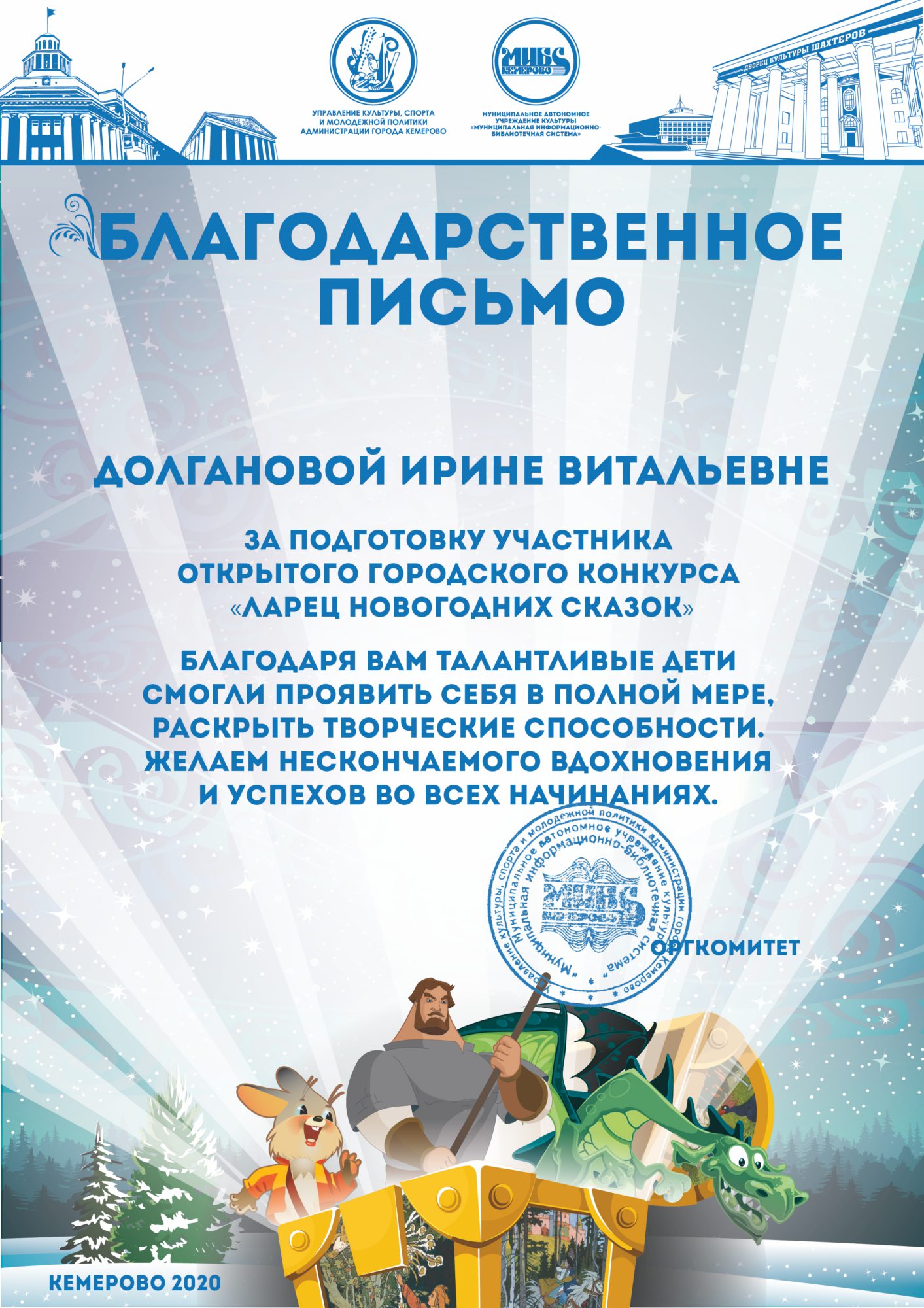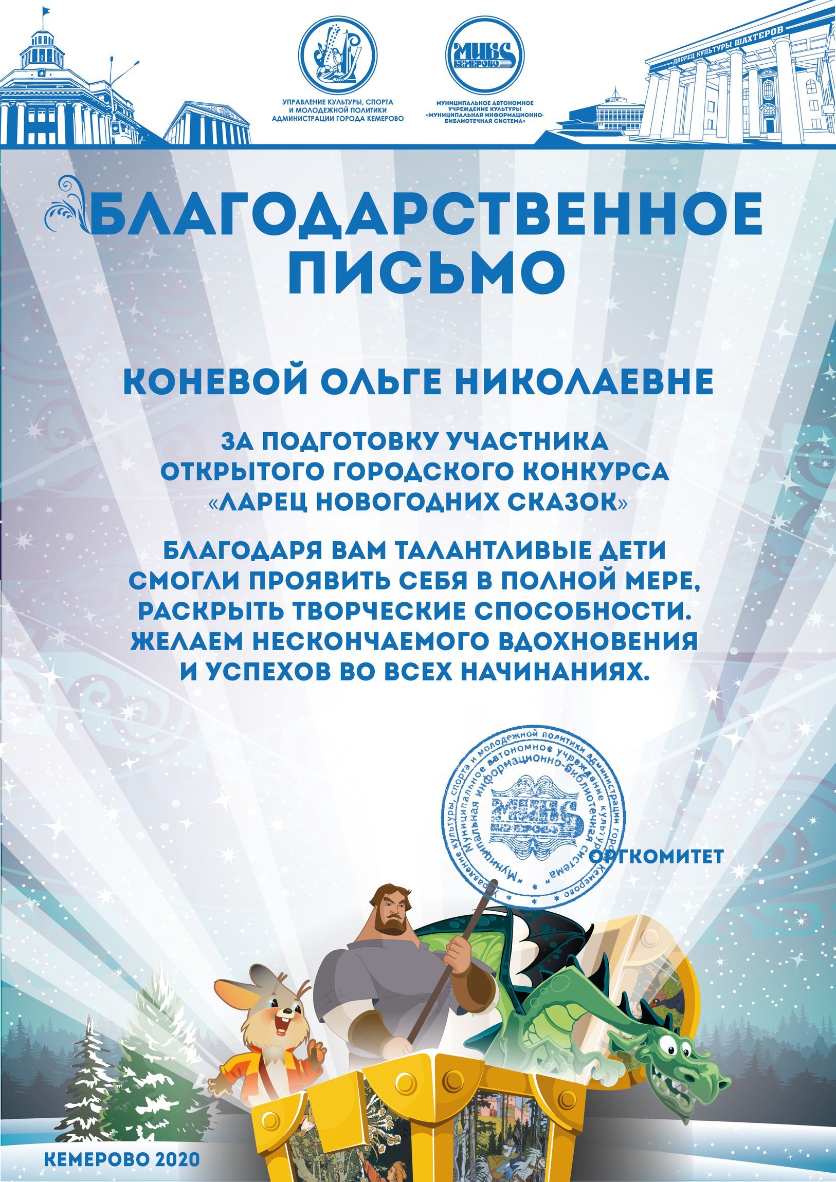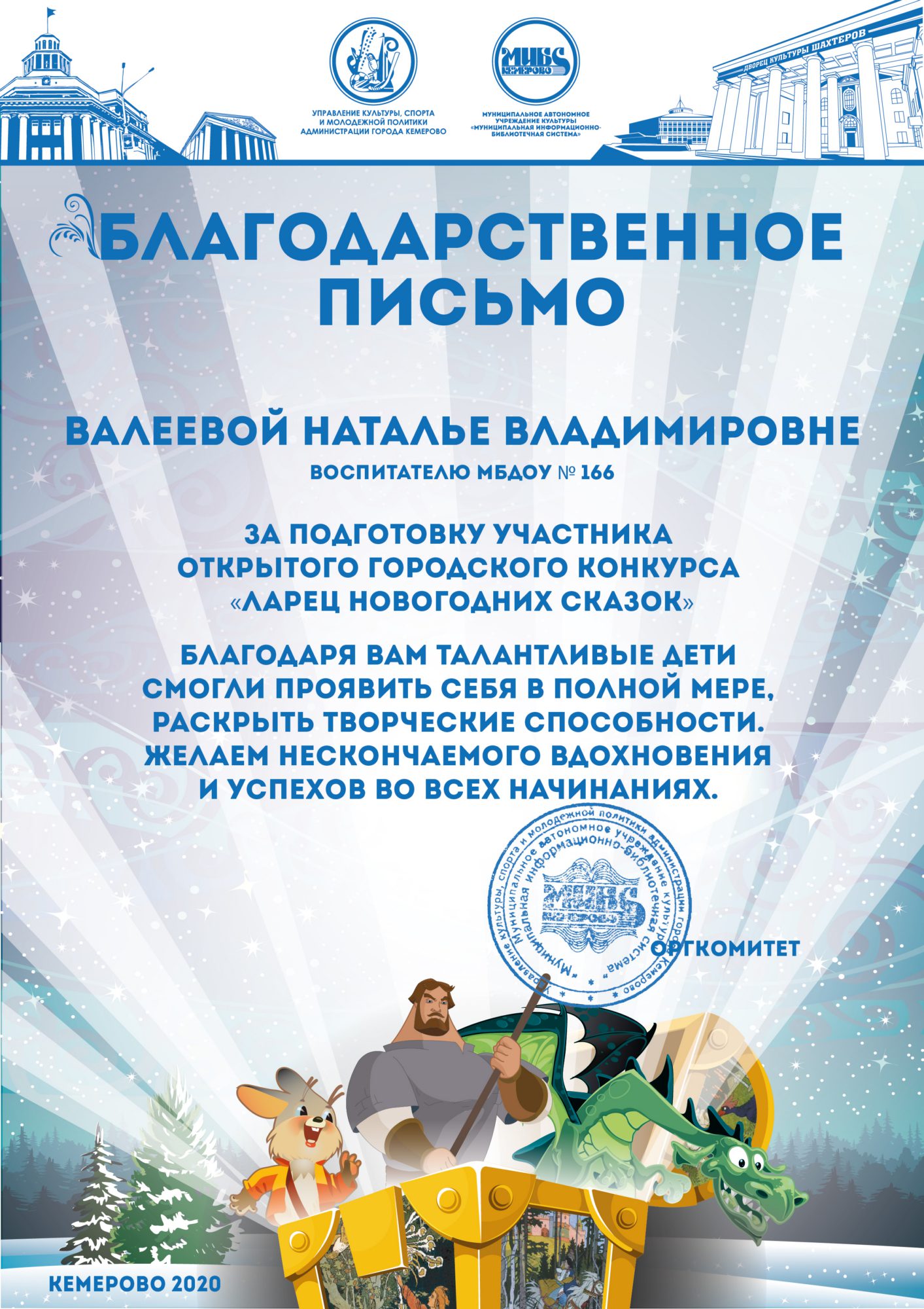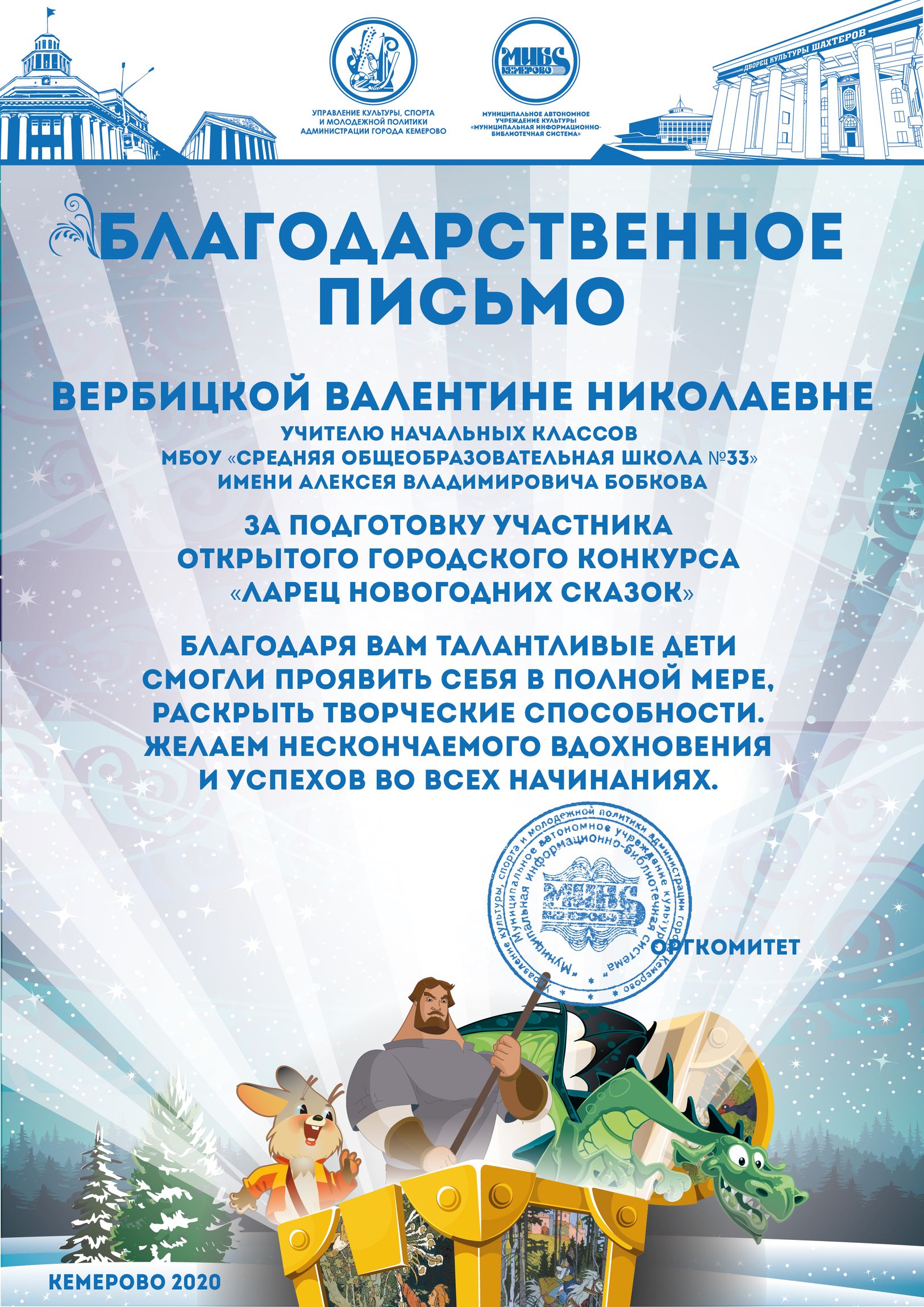 Бикузина Галина Ивановна. Творческая работа «Сказка о Кузбасской столице и новогодней ёлке»