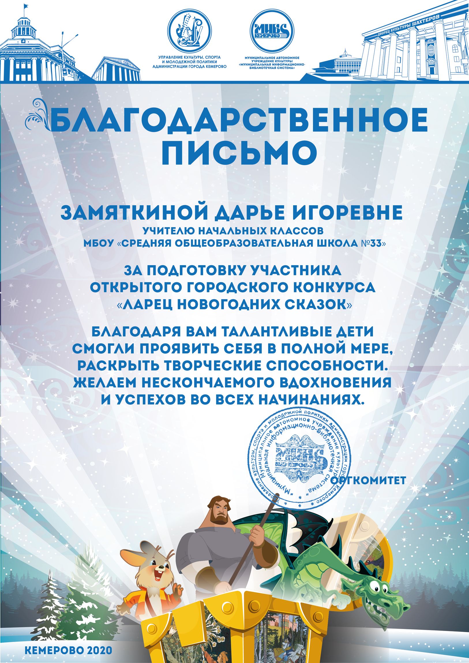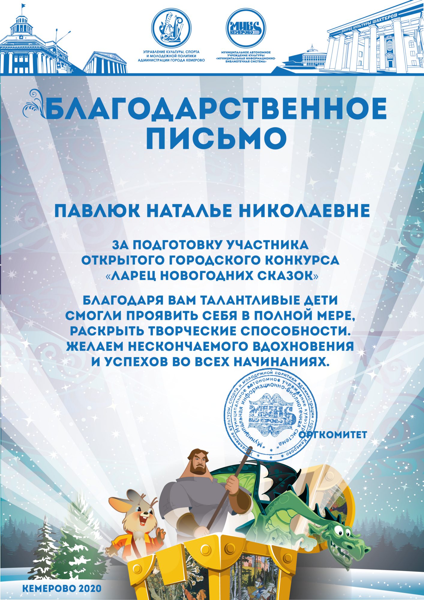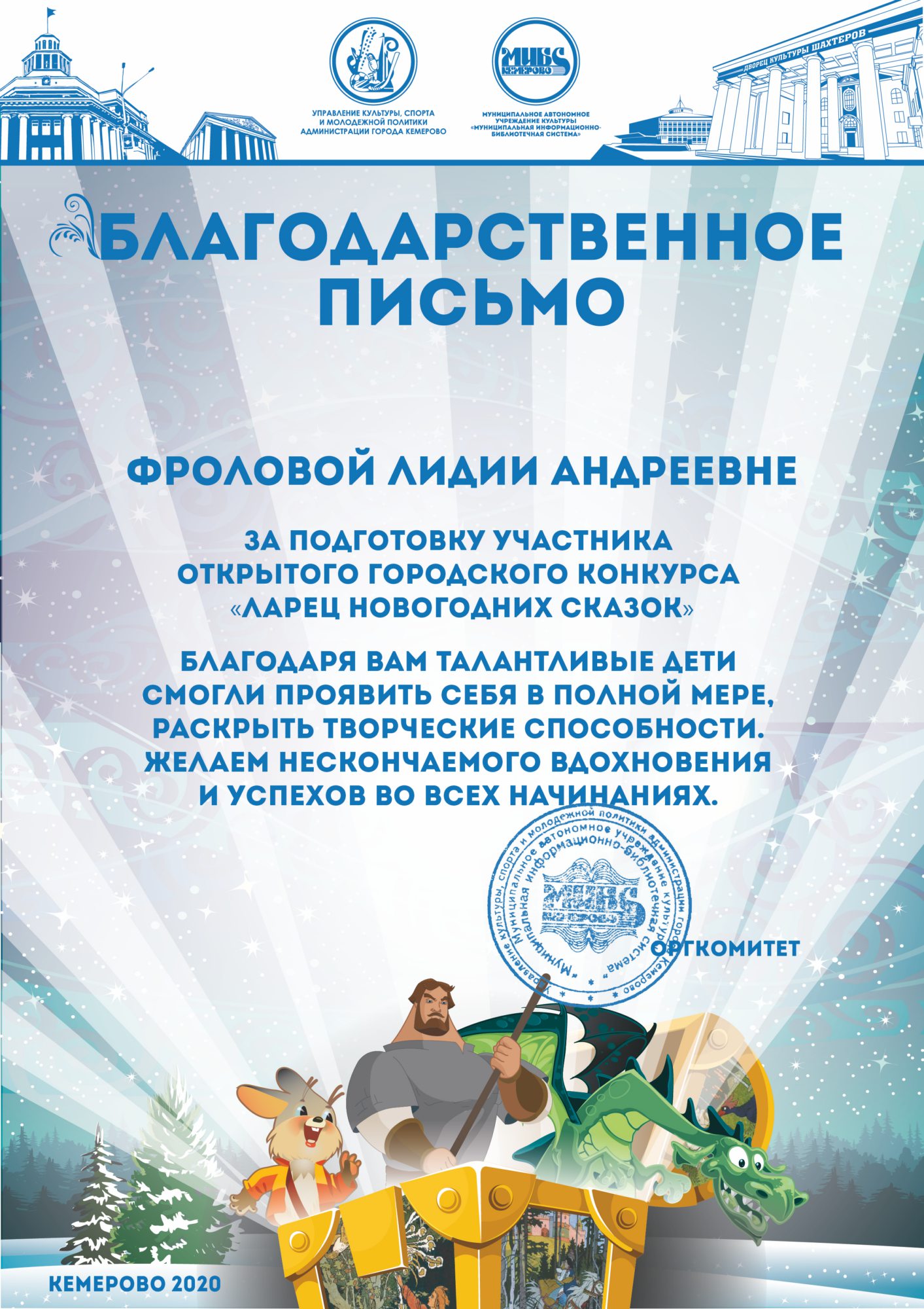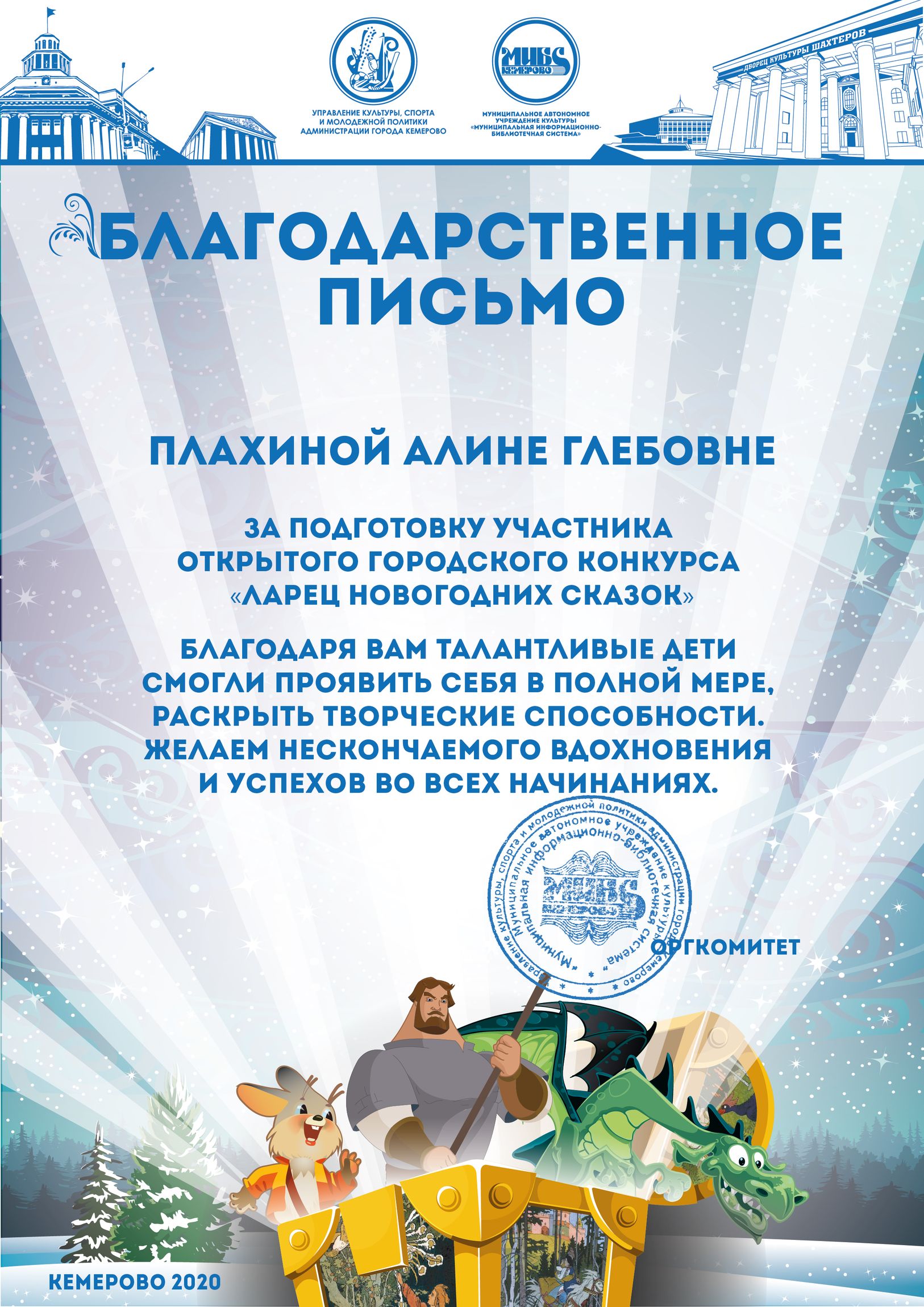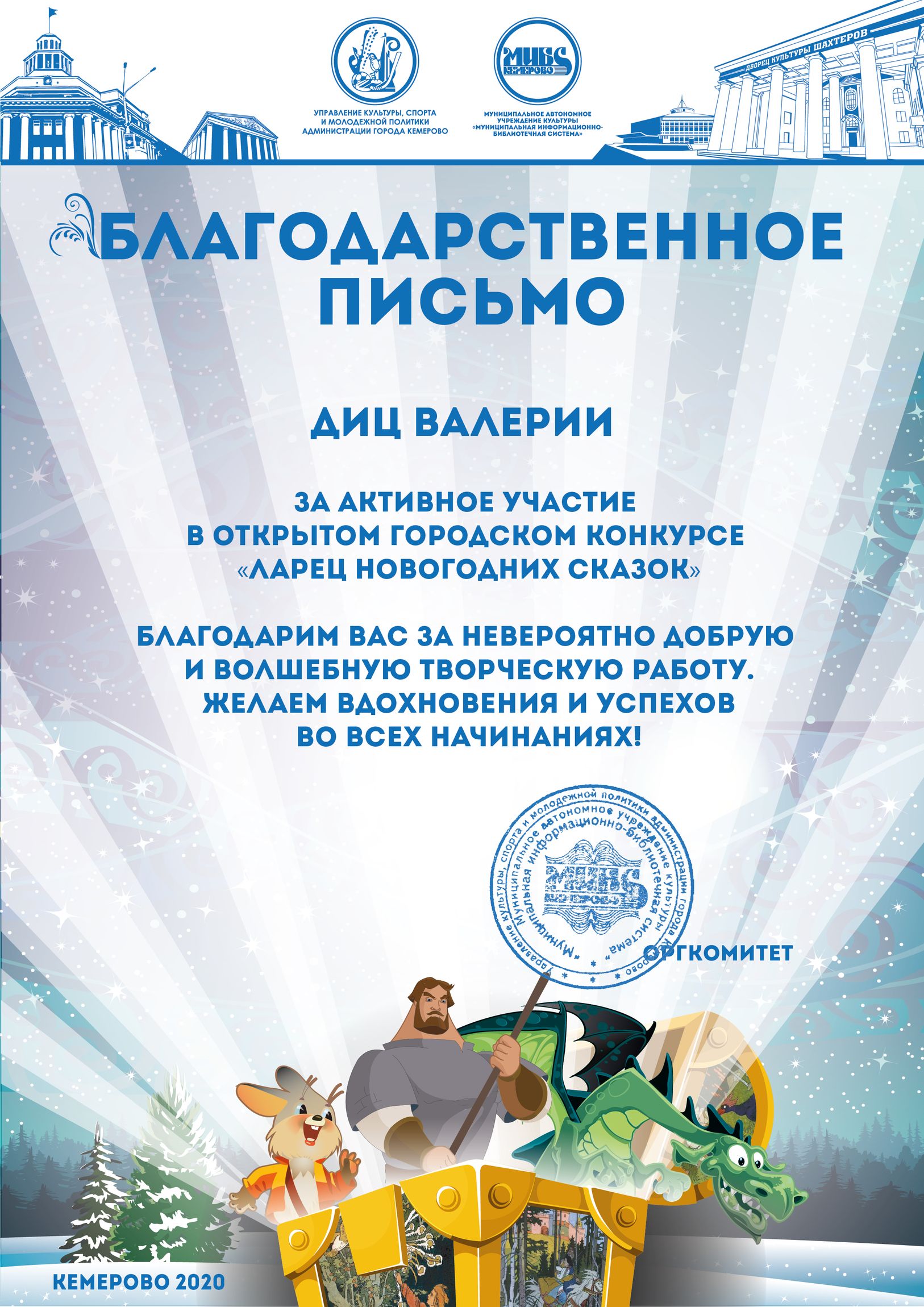 Бикузина Галина Ивановна. Творческая работа «Сказка о Кузбасской столице и новогодней ёлке»