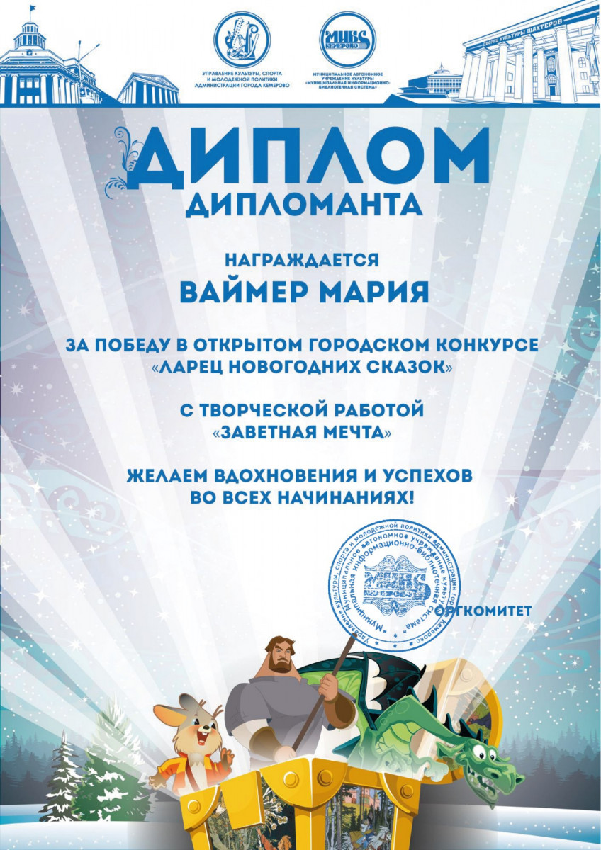 Черемухина Елизавета Максимовна. Творческая работа «В поисках ларца новогодних сказок»