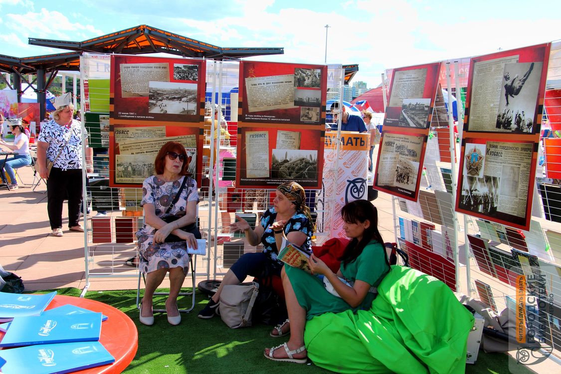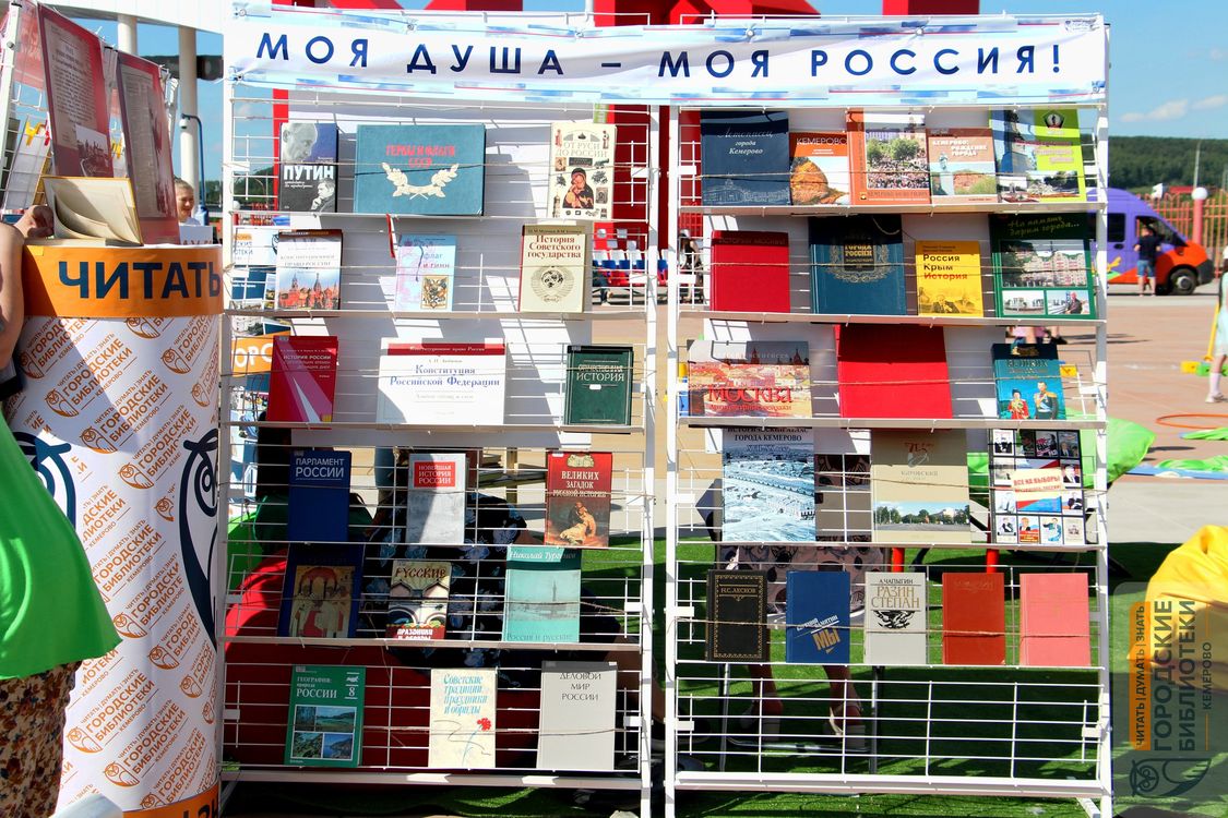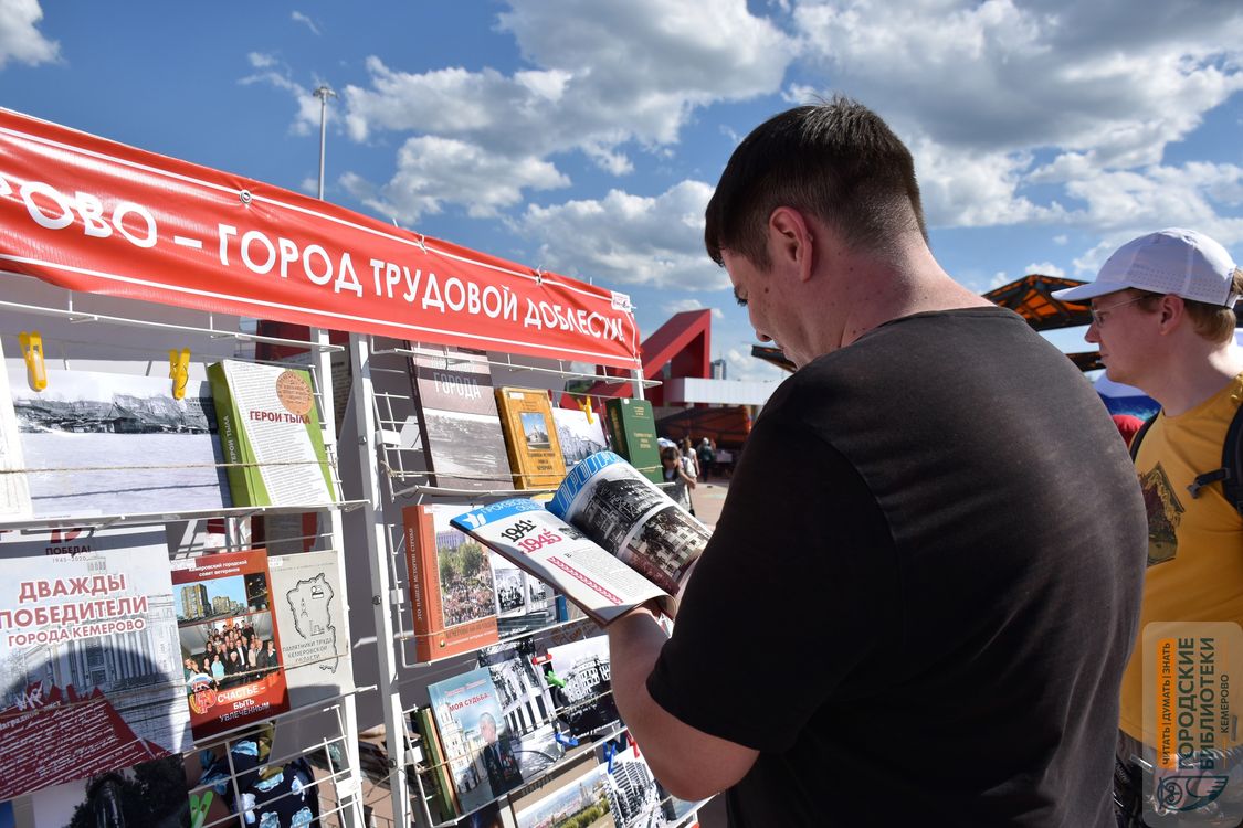 Особое место в программе заняла книжная выставка и экспозиционные планшеты «Кемерово – город трудовой доблести». В этой локации прошло несколько экскурсий, которые провели сотрудники библиотек. Выставка «Моя душа – моя Россия» представила коллекцию книг из библиотечного фонда.