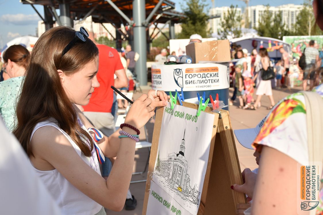Горожане играли в настольные игры, собирали пазл «Улицы Кемерово», делали забавные игрушки из воздушных шаров, раскрашивали любимый город на настоящем мольберте, отдыхали в летнем читальном зале с любимой книгой, мастерили фуражки, пилотки, флажки с триколором, отвечали на вопросы викторин и, несмотря на жару, бодро и активно участвовали во всех затеях, которые подготовили для них сотрудники библиотек.