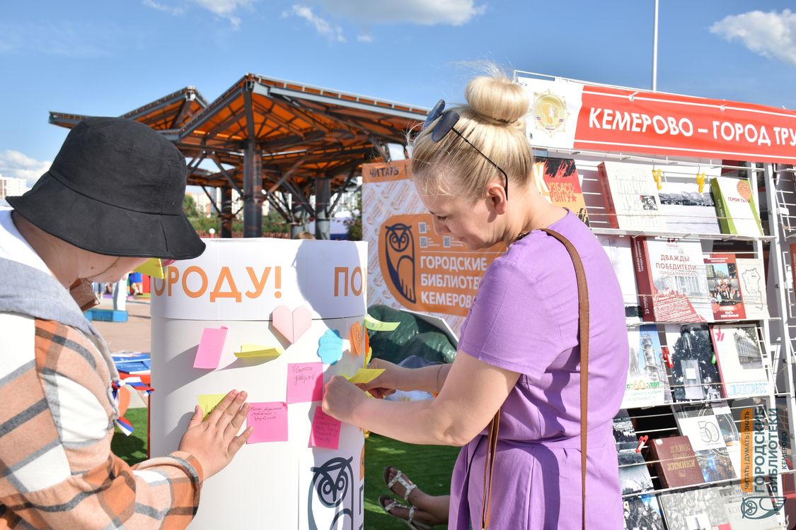 В домашние библиотеки кемеровчан передали более 100 книг по традиционной программе «Хорошая книга – в добрые руки». Оригинальная фотозона, посвящённая выдающимся русским писателям и их бессмертным произведениям. Кемеровчане оставили массу тёплых пожеланий и добрых слов для Кемерова на поздравительной тумбе. Праздник состоялся!