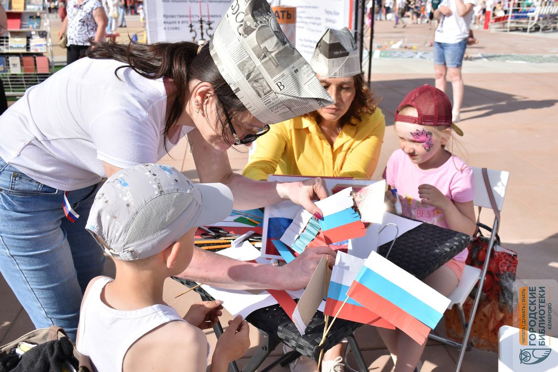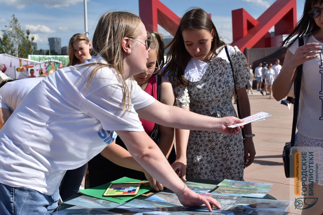 12 июня на Московской площади в честь Дня России и Дня города сотрудники городских библиотек (МАУК «МИБС») организовали для кемеровчан праздничную познавательно-развлекательную площадку «Литературный квартирник».
