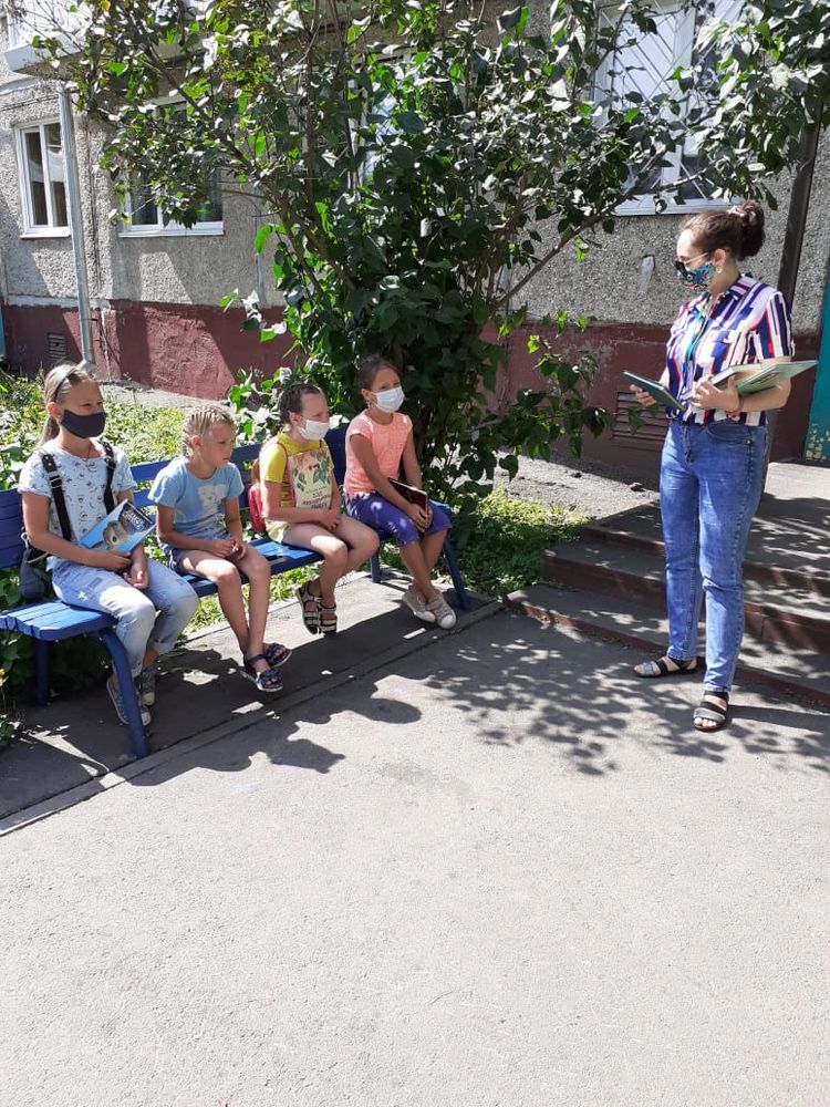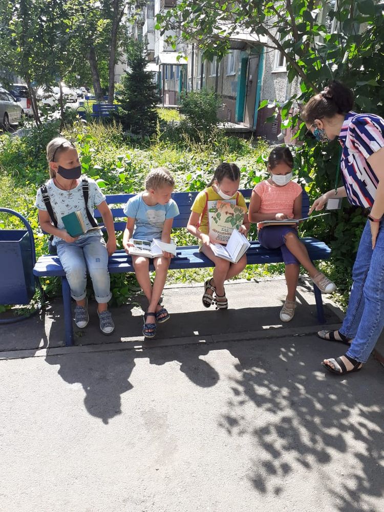 16 июля 2020 года сотрудник специализированной библиотеки по обслуживанию детей с ограниченными возможностями здоровья «Родник» (б‑р Строителей, 32) провела на открытом воздухе познавательный час «Города Кузбасса», посвященный 300-летию образования Кузбасса, в рамках проекта «Лето с доставкой на дом».