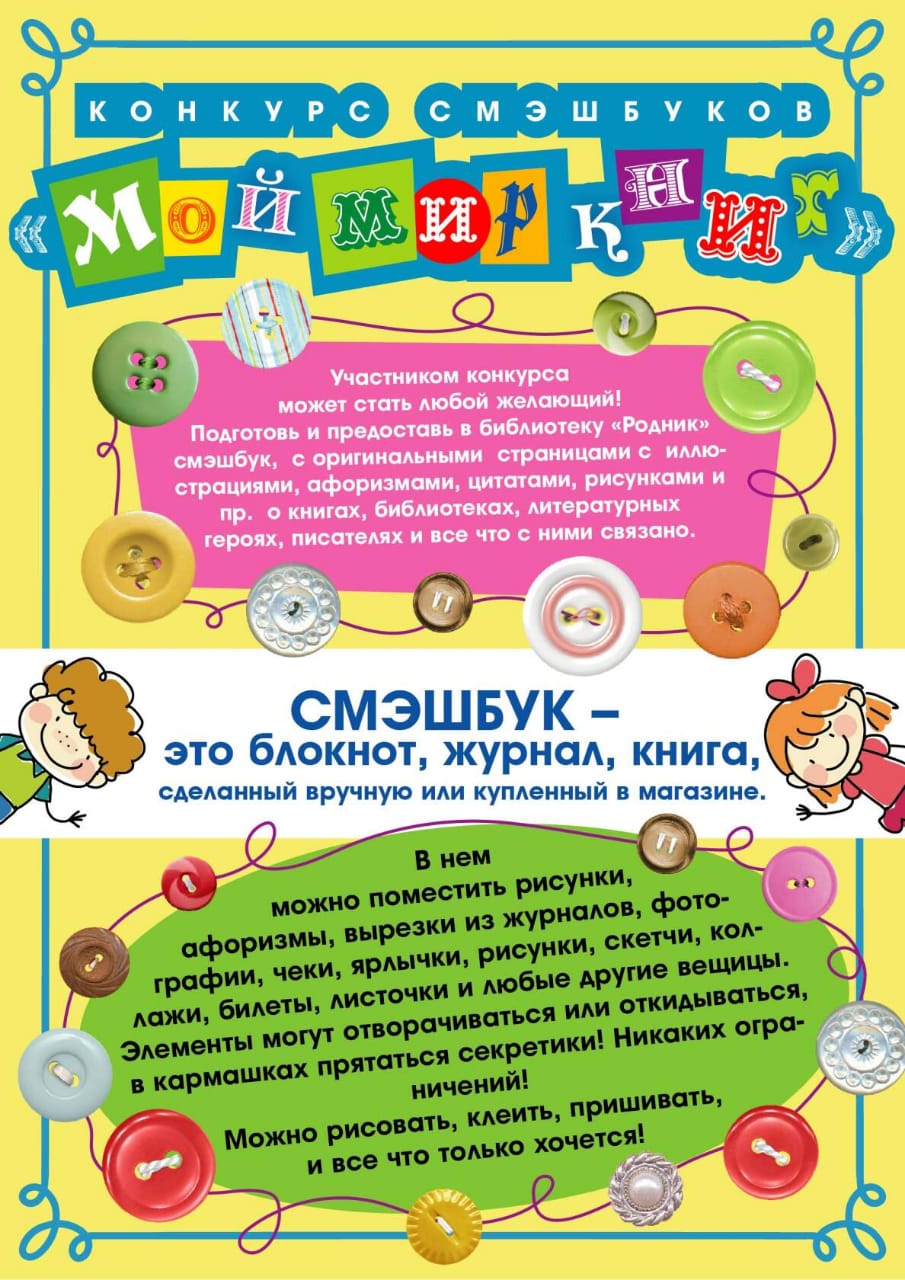 Уважаемые читатели! В связи с последними событиями многие из вас соблюдают режим самоизоляции и проводят время вместе дома. У некоторых родителей на повестке дня встал вопрос: чем занять себя и ребенка? Предлагаем вам замечательную идею, которую можно реализовать в пределах дома или квартиры – конкурс смэшбуков «Мой мир книг»!