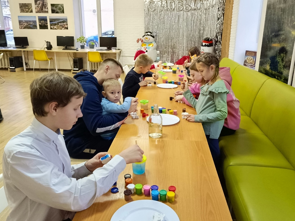 23 декабря 2025 года в преддверии Нового года в Библиотеке городских историй (ул. Весенняя, 7) состоялась особая праздничная программа «Ёлкины сюрпризы». Юные гости: - познакомились с историей праздника; - отгадали целый мешок загадок о новогодних традициях; - стали волшебными художниками и раскрасили гипсовые фигурки — милых пингвинят, праздничные конфеты и даже машинки с ёлками; - сварили душистое мыло с ароматами пломбира, имбирного пряника и спелой вишни; - отправились на таинственные поиски с волшебными фонариками, чтобы найти все загадки, спрятанные в «сказочном лесу»; - зарядились невероятной энергией на ленточной дискотеке. Завершился этот волшебный день вручением долгожданных новогодних подарков. От всего сердца поздравляем дорогих ребят и их семьи с наступающим Новым годом! Пусть в вашем доме всегда живут вера в чудо, мир и счастливые улыбки. Желаем, чтобы весь грядущий год был светлым, добрым и полным волшебства! Отдельные слова благодарности выражаем Территориальному управлению Центрального района – инициаторам и организаторам этого замечательного праздника! Спасибо, что помогаете нам создавать маленькие чудеса!
