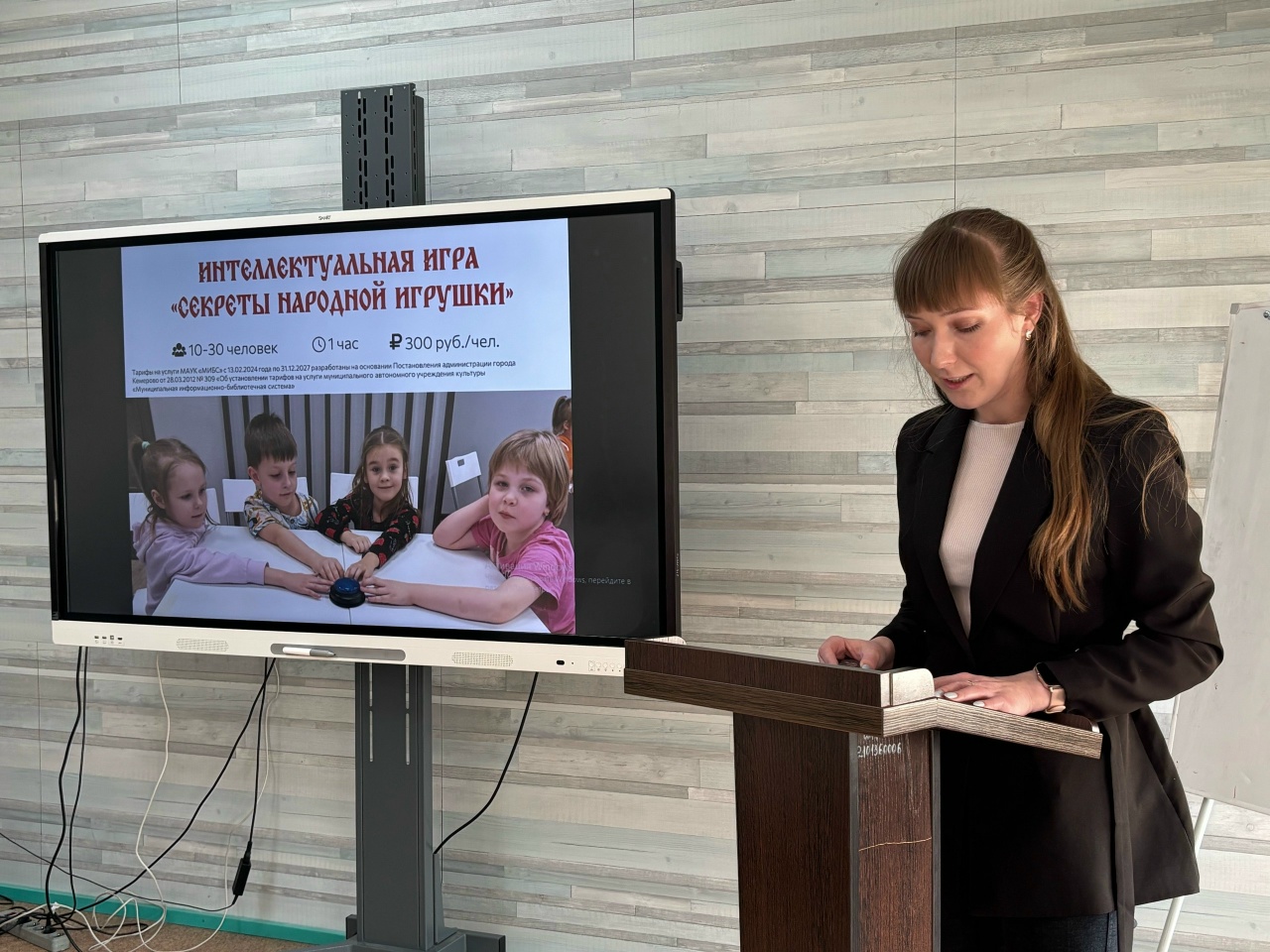 О собственной разработке сотрудников Библиотеки городских историй – интеллектуальной игре с мастер-классом «Секреты народной игрушки» рассказала Ефимова Анастасия Сергеевна, ведущий библиотекарь Библиотеки городских историй.