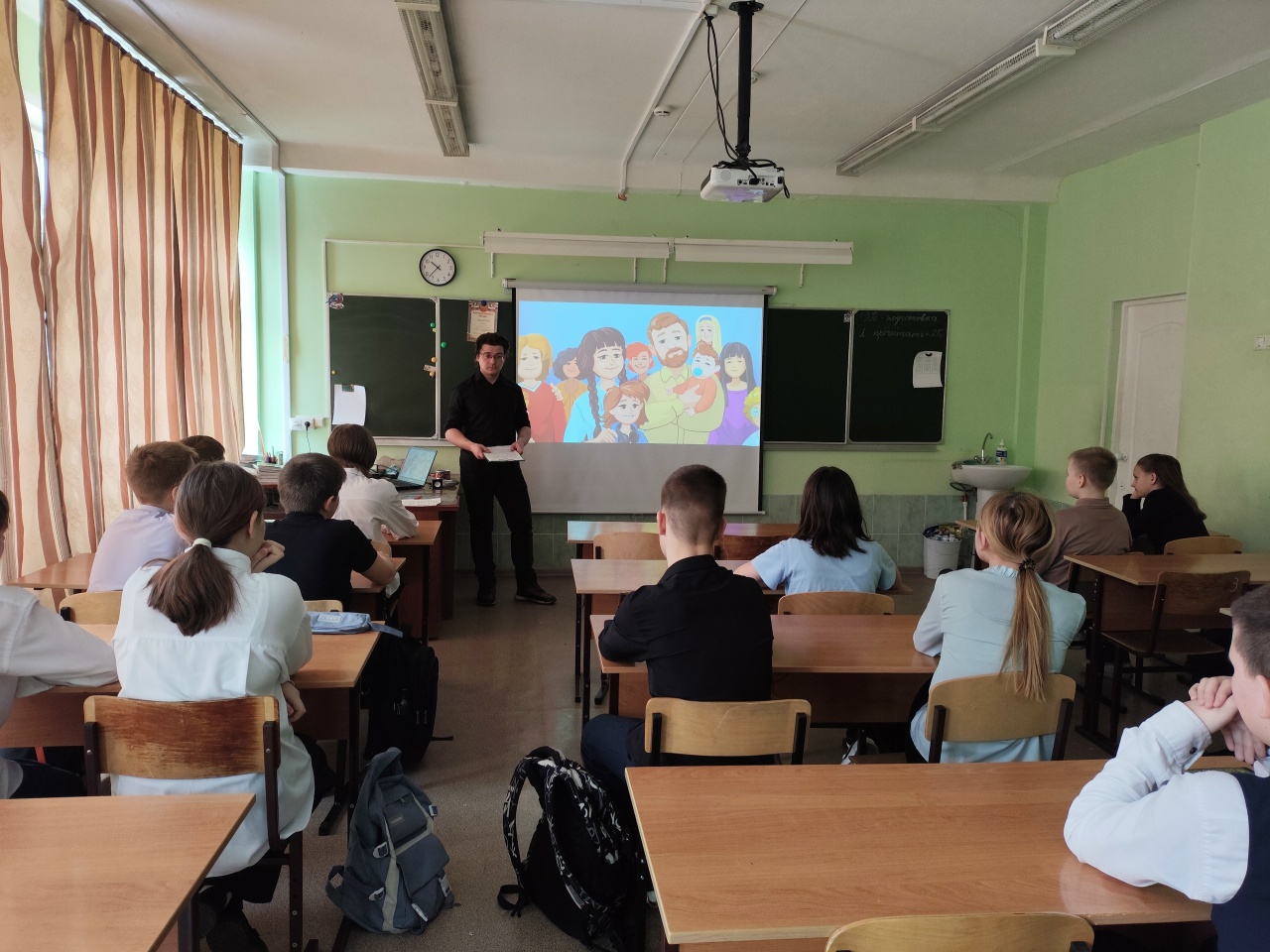 20 марта 2026 года сотрудник Библиотеки им. Н. В. Гоголя (пр-т Ленина, 135)  провёл для учащихся начальных классов МБОУ «Лицей №58» познавательную беседу «Мы Россия: 17 ценностей».