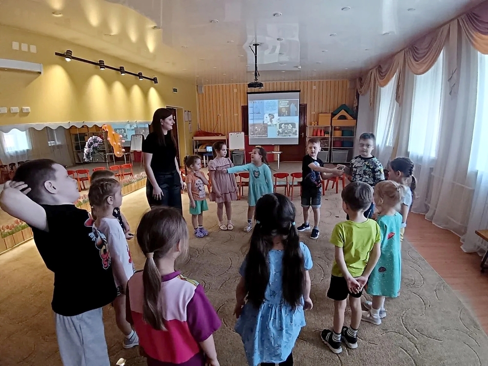 А какая же дружба без вежливости? Дети сыграли в игру «Подари вежливое слово»: встали в круг и передавали мячик соседу, говоря друг другу добрые слова. Эмма Мошковская точно знала: вежливое слово действительно имеет особую силу.