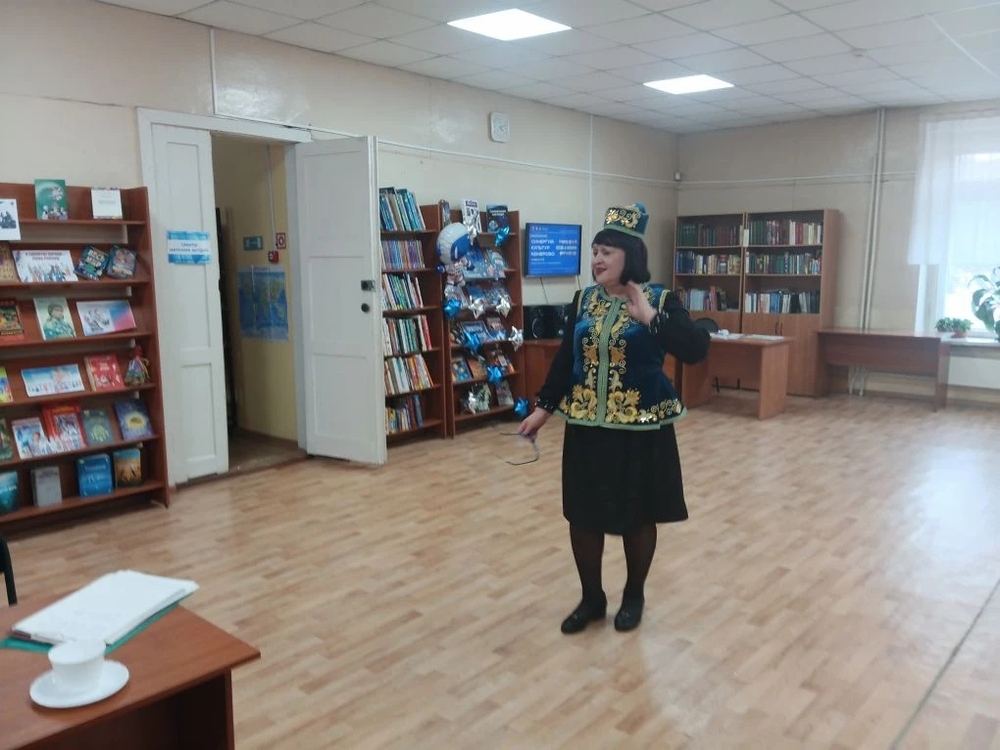 Читатель и друг библиотеки Бирюкова Танзиля Саляховна познакомила участников с культурой татарского народа: историей нации в Сибири, своей творческой выставкой, особенностями костюма и национальной кухни.