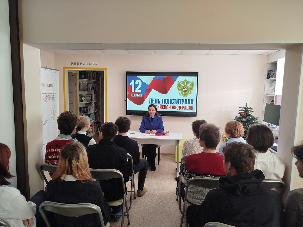 | 12.12.2025 12:30 | Правовой час «Конституция России – Основной Закон государства» (12+) | В ходе мероприятия слушатели узнают о правах и обязанностях гражданина России, основных принципах устройства государства и власти, а также о роли конституционных норм в повседневной жизни | Библиотека им.В.М.Мазаева | Бесплатно